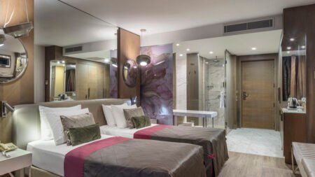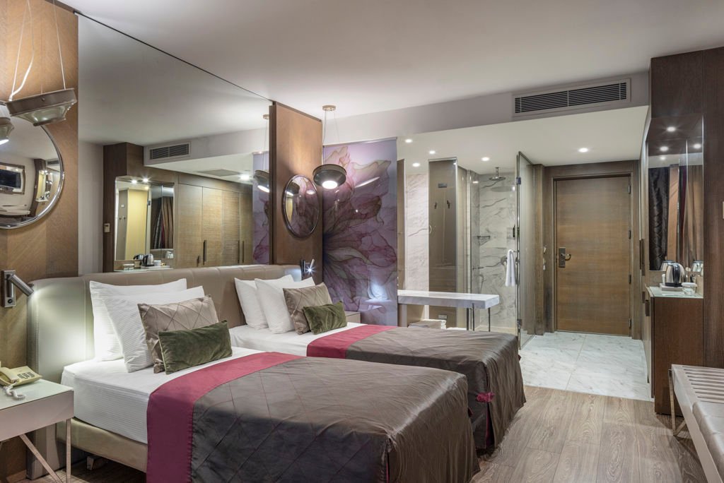 Winter Wanneer je tussen 01-11-2025 en 06-04-2026 in deze accommodatie verblijft, is onderstaande informatie van toepassing. * Ligging * Gelegen op een heuvel * Gelegen aan het privéstrand * Gesloten in het winterseizoen * Ligbedden * Parasol * Centrum van Side op circa 3 kilometer * Dichtstbijzijnde winkel op circa 500 meter * Dichtstbijzijnde restaurant op circa 500 meter * Dichtstbijzijnde bar op circa 500 meter * Bushalte op circa 50 meter * Algemeen & faciliteiten * 3 gebouwen * Maximaal 6 verdiepingen * 511 kamers * Receptie * 24 uur per dag * Lobby * 7 liften * Lift in elk gebouw * Bagageruimte * Wifi in alle openbare ruimtes * 7 winkels * Minimarkt * Wasservice tegen betaling * Doktersservice tegen betaling * Tuin * Privé parkeergelegenheid * Restaurants & bars * Buffetrestaurant * 5 à-la-carterestaurants (vooraf reserveren) * Chinees restaurant * Open tussen ca. april en oktober * Italiaans restaurant * Restaurant met verschillende specialiteiten * Turks restaurant * Visrestaurant * Patisserie * Roomservice tegen betaling * 7 drinkgelegenheden * 3 bars * Eén van deze bars is gesloten in het winterseizoen * Beachbar * Discobar * Lobbybar * Poolbar * Gesloten in het winterseizoen * Activiteiten & ontspanning * Aerobics * Basketbal * Biljart tegen betaling * Boccia * Bowling tegen betaling * Darts * Fitness * Tafeltennis * Tennis * Watersporten tegen betaling * Spa Center * Sauna * Hamam behandelingen tegen betaling * Bubbelbad binnen * Massages tegen betaling * Schoonheidsbehandelingen tegen betaling * Gameroom * Animatie voor volwassenen * Meerdere keren per week * Shows * tussen ca. april en oktober * Livemuziek * tussen ca. april en oktober * Zwembaden * 4 buitenzwembaden * Een aantal van deze zwembaden is gesloten in het winterseizoen * Relaxbad * Eén van deze zwembaden is verwarmd tussen ca. november en maart * Eén van deze zwembaden heeft meerdere glijbanen * De glijbanen hebben verschillende openingsperiodes * Gesloten in het winterseizoen * 2 buitenzwembaden voor kinderen * Gesloten in het winterseizoen * Binnenzwembad * Gesloten in het zomerseizoen * Verwarmd tussen ca. november en april * Binnenzwembad voor kinderen * Gesloten in het zomerseizoen * Zonneterras * Ligbedden * Parasol * Badhanddoekenservice * Kinderfaciliteiten * Mini club (4-12 jaar)- * Teenage club (12-16 jaar) * Gesloten in het winterseizoen * Minidisco * Buitenspeeltuin * Babybedje als preferentie toe te voegen in het boekingsformulier * Verzorging * Ultra All Inclusive * Ontbijt in buffetvorm (07.00-10.00 uur) * Laat ontbijt in buffetvorm (10.00-10.30 uur) * Lunch in buffetvorm (12.30-14.00 uur) * Diner in buffetvorm (18.30-20.30 uur) * Dineren in één van de à-la-carterestaurants 1 keer per verblijf bij een verblijf van minimaal 7 nachten * Snacks (14.00-15.30 uur) * Koffie, thee & koekjes (11.00-17.00 uur) * Middernachtsnack (23.00-07.00 uur) * Selectie geïmporteerde drankjes(10.00-00.00 uur) * Selectie lokale (non-)alcoholische drankjes (10.00-00.00 uur) * Tegen betaling: drankjes in flessen, import drankjes en roomservice * Goed om te weten * Duurzaamheidslabel(s): Green KeyHotelkamers * 2-persoonskamer Voordeel DE * Speciaal tarief * Locatie, formaat, uitzicht en/of faciliteiten kunnen afwijken ten opzichte van andere kamertypes * Op de begane grond * Airconditioning * Kluisje * Televisie * Telefoon tegen betaling * Eet- en drinkfaciliteiten * Koffie- en theefaciliteiten * Minibar * Badkamer douche, toilet en föhn * Wifi * Geen balkon of terras * 2-persoonskamer Standaard DZ * Oppervlakte tussen 23 en 28 m² * Airconditioning * Kluisje * Televisie * Telefoon tegen betaling * Eet- en drinkfaciliteiten * Koffie- en theefaciliteiten * Minibar * Badkamer douche, toilet en föhn * Wifi * Balkon (zitje) * 2-persoonskamer Standaard Zeezicht DZM * Oppervlakte tussen 23 en 28 m² * Zeezicht * Airconditioning * Kluisje * Televisie * Telefoon tegen betaling * Eet- en drinkfaciliteiten * Koffie- en theefaciliteiten * Minibar * Badkamer douche, toilet en föhn * Wifi * Balkon (zitje) * 2-persoonskamer Terras DT * Oppervlakte van circa 28 m² * Airconditioning * Kluisje * Televisie * Telefoon tegen betaling * Eet- en drinkfaciliteiten * Koffie- en theefaciliteiten * Minibar * Badkamer douche, toilet en föhn * Wifi * Terras (zitje) * 2-persoonskamer Terras Whirlpool DTJ * Oppervlakte van circa 28 m² * Airconditioning * Kluisje * Televisie * Telefoon tegen betaling * Eet- en drinkfaciliteiten * Koffie- en theefaciliteiten * Minibar * Badkamer douche, toilet en föhn * Wifi * Terras (zitje, bubbelbad) * 2-persoonskamer Swimup DW * Oppervlakte circa 25 m² * In het hoofdgebouw * Airconditioning * Kluisje * Televisie * Telefoon tegen betaling * Eet- en drinkfaciliteiten * Koffie- en theefaciliteiten * Minibar * Badkamer douche, toilet en föhn * Wifi * Terras (zitje) * Directe toegang tot het gedeelde zwembad * Familiekamer Standaard Zwembadzicht FZP * Oppervlakte van circa 33 m² * Zwembadzicht * 2 slaapkamers * Airconditioning * Kluisje * Televisie * Telefoon tegen betaling * Eet- en drinkfaciliteiten * Koffie- en theefaciliteiten * Minibar * Badkamer douche, toilet en föhn * Wifi * Balkon of terras (zitje) * Familiekamer Standaard Zeezicht FZM * Oppervlakte van circa 33 m² * Zeezicht * Airconditioning * Kluisje * Televisie * Telefoon tegen betaling * Eet- en drinkfaciliteiten * Koffie- en theefaciliteiten * Minibar * Badkamer douche, toilet en föhn * Wifi * Balkon of terras (zitje) * Suite Standaard Zeezicht UZM * Oppervlakte circa 35 m² * Zeezicht * Airconditioning * Kluisje * Televisie * Telefoon tegen betaling * Eet- en drinkfaciliteiten * Koffie- en theefaciliteiten * Minibar * Badkamer douche, toilet, föhn, badjassen en badslippers * Wifi * Balkon of terras (zitje)