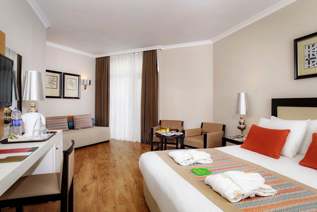 Direct naar: * Ligging () * Faciliteiten () * Restaurants & Bars () * Hotelkamers () * Sport & Ontspanning () * Zwembaden () * Verzorging () * Ligging: Akka Alinda * Direct aan het privéstrand * Gelegen in het centrum van Kiriş * Op ca. 7 kilometer van Kemer * Bushalte voor het hotel * Winkeltjes op loopafstand * Bij deze reis is de transfer van de luchthaven naar het hotel en v.v. inbegrepen Faciliteiten * 5 gebouwen met 5 verdiepingen * In alle gebouwen is een lift aanwezig * 401 kamers * 24-uursreceptie * Bagageruimte * Lobby * Tuin * Gratis wifi * Kapsalon* * Winkeltjes en minimarkt* * Wasservice* * Doktersservice* * Privé parkeerterrein *Tegen betaling Restaurants & bars * 1 buffetrestaurant * 2 à-la-carterestaurants (vooraf reserveren) * 5 bars * Disco Hotelkamers * Standaardkamer Side Block (1-3 personen) * Gelegen in het bijgebouw * Ca. 22-25 m² * Telefoon* * Airconditioning * Satelliettelevisie * Minibar * Kluisje * Wifi * Douche * Toilet * Föhn * Balkon of terras met zitje * De voordeelkamer (2 personen) kan qua ligging en faciliteiten afwijken van de Standaardkamer Side Block *Tegen betaling * Standaardkamer hoofdgebouw landzicht (1-3 personen) * Ca. 22-26 m² * Gelegen in het hoofdgebouw * Dezelfde faciliteiten als de Standaardkamer Side Block * Tegen een meerprijs te boeken met zeezicht * Comfort standaardkamer (1-3 personen) * Ca. 28-32 m² * Dezelfde faciliteiten als de Standaardkamer Side Block * Badjas en slippers * Familiekamer hoofdgebouw (2-4 personen) * Ca. 36 m² * Bestaat uit 2 ruimtes * Dezelfde faciliteiten als de Standaardkamer Side Block * Familiekamer duplex (2-4 personen) * Ca. 40 m² * Slaapkamer op de begane grond en een slaapkamer op de eerste verdieping * Dezelfde faciliteiten als de Standaardkamer Side Block * Comfort familiekamer (2-4 personen) * Ca. 36 m² * Bestaat uit 2 ruimtes * Dezelfde faciliteiten als de Standaardkamer Side Block Sport & Ontspanning * Fitness * Aerobics * Yoga * Boogschieten * Basketbal * Beachvolleybal * Boccia * Darts * Voetbal * Biljart* * Tafeltennis * Tennis * Watersporten aan het strand* * Turks bad * Sauna * Binnenzwembad * bubbelbad * Massages en behandelingen* * Dagelijks entertainment *Tegen betaling Zwembaden & Strand * 1 buitenzwembad * 1 buitenzwembad met 4 glijbanen (op vaste tijden geopend) * 1 binnenzwembad * Zonneterras * Privéstrand * Ligbedden, matrasjes en parasols gratis (zwembad en strand) * Gratis badhanddoekenservice SPECIAL ALL INCLUSIVE MUZIEKREIS TURKIJE: Akka Alinda * Verblijf o.b.v. All Inclusive: * Ontbijt in buffetvorm (07.00-10.00 uur) * Laat ontbijt in buffetvorm (10.00-11.00 uur) * Lunch in buffetvorm (12.30-15.00 uur) * Diner in buffetvorm (18.30-21.30 uur) * Snacks (12.00-16.00 uur) * Koffie/thee, koekjes (11.00-18.00 uur) * IJs (12.00-18.00 uur) * Nachtsnack (23.00-06.00 uur) * Geselecteerde lokale alcoholische en alcoholvrije drankjes en een aantal import drankjes van 09.00 tot 02.00 uur * Tegen betaling: roomservice, import drankjes, alles drankjes na 02.00 uur en de à-la-carterestaurants (vooraf reserveren)