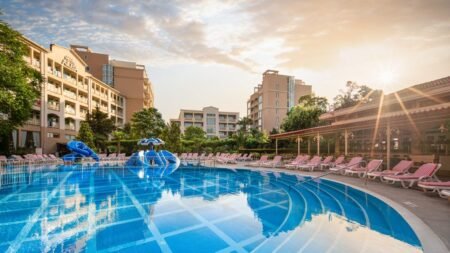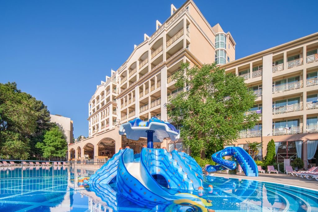 Zomer Wanneer je tussen 20-05-2026 en 30-09-2026 in deze accommodatie verblijft, is onderstaande informatie van toepassing. * Ligging * In het centrum van Sunny Beach * Openbaar strand op circa 50 meter * Centrum van Nessebar op circa 5 kilometer * Dichtstbijzijnde restaurant op circa 5 meter * Dichtstbijzijnde bar op circa 5 meter * Bushalte op circa 100 meter * Algemeen & faciliteiten * 3 gebouwen * Maximaal 8 verdiepingen * 340 kamers * Receptie * 24 uur per dag * Lobby * 7 liften * Lift in elk gebouw * Bagageruimte * Wifi in alle openbare ruimtes * Wasservice tegen betaling * Doktersservice tegen betaling * Tuin * Privé parkeergelegenheid tegen betaling * Restaurants & bars * Buffetrestaurant * Snackbar * 2 drinkgelegenheden * Lobbybar * Poolbar * Activiteiten & ontspanning * Aerobics * Darts * Fitness * Tafeltennis * Volleybal * Watersporten * Yoga * Spafaciliteiten * Massages op afspraak tegen betaling * Animatie voor volwassenen * 6 keer per week * Shows * 2 keer per week * Livemuziek * Eén keer per week * Zwembaden * 2 buitenzwembaden * Buitenzwembad voor kinderen * Glijbaan * Zonneterras * Ligbedden met matrasjes * Parasol * Badhanddoekenservice gratis met borg * Kinderfaciliteiten * Mini club (4-12 jaar) * 6 keer per week * Minidisco * 6 keer per week * Buitenspeeltuin * Babybedje op aanvraag via ons contact center * Babysitservice tegen betaling * ter plaatse op aanvraag * Verzorging * All Inclusive * Ontbijt in buffetvorm (07.30-10.00 uur) * Laat ontbijt in buffetvorm (10.30-11.30 uur) * Lunch in buffetvorm (12.00-14.00 uur) * Diner in buffetvorm (18.00-20.30 uur) * Snacks (13.00-17.00 uur) * Koffie, thee & koekjes (10.00-18.00 uur) * IJs (15.00-17.00 uur) * Selectie lokale (non-)alcoholische drankjes (10.00-23.00 uur) * Tegen betaling: consumpties in disco en import drankjesHotelkamers * 2-persoonskamer Voordeel DE * Speciaal tarief * Locatie, formaat, uitzicht en/of faciliteiten kunnen afwijken ten opzichte van andere kamertypes * Oppervlakte van circa 24 m² * Airconditioning * Kluisje tegen betaling * Televisie * Telefoon tegen betaling * Eet- en drinkfaciliteiten * Koffie- en theefaciliteiten * Mini koelkast * Badkamer bad of douche, toilet en föhn * Wifi * Frans balkon * 2-persoonskamer Comfort Landzicht DJL * Oppervlakte circa 28 m² * Landzicht * Kinderen slapen in een extra bed * Airconditioning * Kluisje tegen betaling * Televisie * Telefoon tegen betaling * Eet- en drinkfaciliteiten * Koffie- en theefaciliteiten * Mini koelkast * Badkamer douche, toilet en föhn * Wifi * Balkon of terras (zitje) * 2-persoonskamer Comfort Zeezicht DJM * Oppervlakte circa 28 m² * Zeezicht * Airconditioning * Kluisje tegen betaling * Televisie * Telefoon tegen betaling * Eet- en drinkfaciliteiten * Koffie- en theefaciliteiten * Mini koelkast * Badkamer douche, toilet en föhn * Wifi * Balkon of terras (zitje) * 2-persoonskamer Deluxe Landzicht DDL * Oppervlakte circa 28 m² * Landzicht * Airconditioning * Kluisje tegen betaling * Televisie * Telefoon tegen betaling * Eet- en drinkfaciliteiten * Koffie- en theefaciliteiten * Mini koelkast * Badkamer bad of douche, toilet en föhn * Wifi * Balkon of terras (zitje) * 2-persoonskamer Deluxe Zeezicht DDM * Oppervlakte circa 28 m² * Zeezicht * Airconditioning * Kluisje tegen betaling * Televisie * Telefoon tegen betaling * Eet- en drinkfaciliteiten * Koffie- en theefaciliteiten * Mini koelkast * Badkamer bad of douche, toilet en föhn * Wifi * Balkon of terras (zitje) * Familiekamer Standaard Landzicht FZL * Oppervlakte circa 64 m² * Landzicht * Woon-/slaapkamer * Slaapbank voor twee personen * Eén slaapkamer * Airconditioning * Kluisje tegen betaling * Televisie * Telefoon tegen betaling * Kitchenette * Magnetron * Koffie- en theefaciliteiten * Mini koelkast * Badkamer bad of douche, toilet en föhn * Apart toilet * Wifi * Balkon of terras (zitje) * Familiekamer Standaard Zeezicht FZM * Oppervlakte circa 64 m² * Zeezicht * Woon-/slaapkamer * Slaapbank voor twee personen * Eén slaapkamer * Airconditioning * Kluisje tegen betaling * Televisie * Telefoon tegen betaling * Kitchenette * Magnetron * Koffie- en theefaciliteiten * Mini koelkast * Badkamer bad of douche, toilet en föhn * Apart toilet * Wifi * Balkon of terras (zitje)