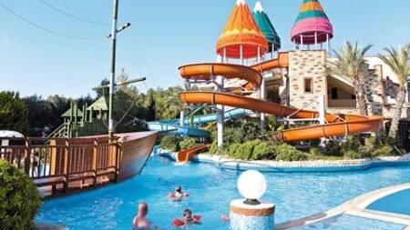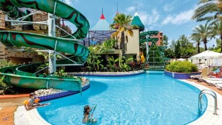 AQI Pegasos Royal in Alanya is waterpret voor iedereen. Met een heus “Captain Nemo’s Castle” en 16 glijbanen is het een waar paradijs. Wanneer ze de glijbanen zat zijn, hebben de kleintjes de tijd van hun leven in de kids club. Voor jou het goede moment om te ontspannen in de hamam of probeer één van de vele sporten uit, parasailen bijvoorbeeld. Na een dag vol activiteiten is het moeilijk kiezen in welk van de 4 restaurants je die avond gaat eten. Gelukkig is elke keuze in AQI Pegasos Royal een goede keuze, dus dat wordt zorgeloos genieten.
