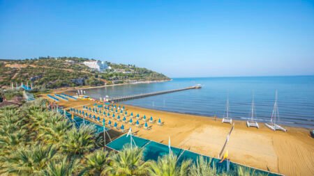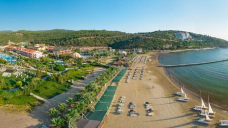 Zomer Wanneer je tussen 30-03-2026 en 02-11-2026 in deze accommodatie verblijft, is onderstaande informatie van toepassing. * Ligging * Gelegen aan het privéstrand * Zandstrand * Ligbedden met matrasjes * Parasol * Centrum van Kusadasi op circa 9 kilometer * Dichtstbijzijnde winkel op circa 9 kilometer * Dichtstbijzijnde restaurant op circa 9 kilometer * Dichtstbijzijnde bar op circa 9 kilometer * Bushalte (op loopafstand) * Algemeen & faciliteiten * 9 gebouwen * Maximaal 3 verdiepingen * 489 kamers * Receptie * 24 uur per dag * Lobby * Meerdere liften * Niet in elk gebouw een lift * Bagageruimte * Wifi in alle openbare ruimtes * Internetruimte tegen betaling * 12 winkels * Minimarkt * Wasservice tegen betaling * Doktersservice tegen betaling * Tuin * Openbare parkeergelegenheid * Privé parkeergelegenheid * Restaurants & bars * Buffetrestaurant * Speciaal kinderbuffet * 5 à-la-carterestaurants * 9 drinkgelegenheden * 9 bars * Activiteiten & ontspanning * Aerobics * Basketbal * Beachvolleybal * Biljart tegen betaling * Boccia tegen betaling * Bowling tegen betaling * Darts tegen betaling * Duikcentrum tegen betaling * Fitness * Midgetgolf * Squash * Tafeltennis * Tennis materiaal tegen betaling * Voetbal * Watersporten tegen betaling * Yoga * Spafaciliteiten * Sauna * Hamam * Bubbelbad binnen * Massages tegen betaling * Schoonheidsbehandelingen tegen betaling * Gameroom * Animatie * Zwembaden * 3 buitenzwembaden * 3 buitenzwembaden voor kinderen * Eén van deze zwembaden heeft 3 glijbanen * Aquapark * Glijbaan voor volwassenen en kinderen * Binnenzwembad * Binnenzwembad voor kinderen * Zonneterras * Ligbedden met matrasjes * Parasol * Badhanddoekenservice * Kinderfaciliteiten * Mini club (4-12 jaar) * 6 keer per week * Minidisco * Kinderbioscoop * Buitenspeeltuin * Babybedje als preferentie toe te voegen in het boekingsformulier * Buggy tegen betaling en met borg * ter plaatse op aanvraag * Verzorging * Ultra All Inclusive * Ontbijt in buffetvorm (07.00-10.00 uur) * Laat ontbijt in buffetvorm (10.00-11.00 uur) * Lunch in buffetvorm (12.30-14.30 uur) * Diner in buffetvorm (18.30-21.30 uur) * Dineren in één van de à-la-carterestaurants 1 keer per verblijf bij een verblijf van minimaal 7 dagen * Snacks (11.30-16.00 uur) * Koffie, thee & koekjes (16.30-17.30 uur) * IJs (12.30-14.30 uur) * Middernachtsnack (01.00-06.00 uur) * Selectie geïmporteerde drankjes * Selectie lokale (non-)alcoholische drankjes (24 uur per dag) * Tegen betaling: import drankjes en verse vruchtensappen * Goed om te weten * Duurzaamheidslabel(s): GSTC LabelHotelkamers * 2-persoonskamer Voordeel DE * Speciaal tarief * Locatie, formaat, uitzicht en/of faciliteiten kunnen afwijken ten opzichte van andere kamertypes * Oppervlakte circa 25 m² * Airconditioning gratis * Kluisje * Satelliettelevisie * Telefoon tegen betaling * Eet- en drinkfaciliteiten * Koffie- en theefaciliteiten * Minibar tegen betaling * Bij aankomst gevuld * Badkamer inloopdouche, toilet en föhn * Wifi * Balkon (zitje) * 2-persoonskamer Standaard DZ * Oppervlakte circa 25 m² * Tuinzicht * Airconditioning gratis * Kluisje * Satelliettelevisie * Telefoon tegen betaling * Eet- en drinkfaciliteiten * Koffie- en theefaciliteiten * Minibar tegen betaling * Bij aankomst gevuld * Badkamer inloopdouche, toilet en föhn * Wifi * Balkon (zitje) * 2-persoonskamer Superior DS * Oppervlakte circa 35 m² * Airconditioning gratis * Kluisje * Satelliettelevisie * Telefoon tegen betaling * Eet- en drinkfaciliteiten * Koffie- en theefaciliteiten * Minibar tegen betaling * Bij aankomst gevuld * Badkamer douche, toilet en föhn * Wifi * Balkon (zitje) * Familiekamer Standaard FZ * Oppervlakte circa 35 m² * Airconditioning gratis * Kluisje * Satelliettelevisie * Telefoon tegen betaling * Eet- en drinkfaciliteiten * Koffie- en theefaciliteiten * Minibar tegen betaling * Bij aankomst gevuld * Badkamer inloopdouche, toilet en föhn * Wifi * Balkon (zitje) * Familiekamer Superior (Suite) FS1 * Oppervlakte circa 46 m² * 3 slaapkamers * Airconditioning gratis * Kluisje * Satelliettelevisie * Telefoon tegen betaling * Eet- en drinkfaciliteiten * Koffie- en theefaciliteiten * Minibar gratis * Badkamer douche, bad, toilet en föhn * Wifi * Balkon (zitje) * Familiekamer Suite FU * Oppervlakte circa 41 m² * Woon-/slaapkamer * Eén slaapkamer * Airconditioning gratis * Kluisje * Satelliettelevisie * Telefoon tegen betaling * Eet- en drinkfaciliteiten * Koffie- en theefaciliteiten * Minibar tegen betaling * Bij aankomst gevuld * Badkamer douche, toilet en föhn * Wifi * Balkon (zitje)