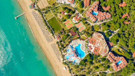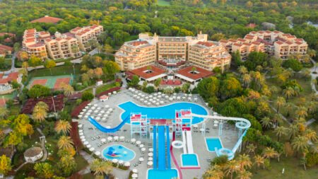 Direct naar: * Ligging () * Faciliteiten () * Restaurants & Bars () * Hotelkamers () * Sport & Ontspanning () * Kinderfaciliteiten () * Zwembaden () * Verzorging () Ligging: Aquaworld Belek By MP Hotels (voorheen Waterworld Belek) * Direct aan het privéstrand * Op ca. 2 kilometer van het centrum van Belek * Bushalte op ca. 100 meter * Winkels, restaurants en bars op ca. 2 kilometer * Shuttleservice naar Antalya en Belek tegen betaling Faciliteiten * 1 hoofdgebouw, 2 bijgebouwen en 21 village gebouwen met maximaal 6 verdiepingen * 6 liften * 772 kamers * 24-uursreceptie * Bagageruimte * Lobby * Tuin * Gratis wifi in de openbare ruimtes * Roomservice* * Kapsalon* * Winkeltjes en minimarkt* * Wasservice* * Doktersservice* * Openbare en privé parkeergelegenheid *Tegen betaling Restaurants & bars * 1 buffetrestaurant * 5 specialiteitenrestaurants (vooraf reserveren) * 2 snackrestaurants * Beer & Schnitzel Garden * 9 bars * Disco Hotelkamers * Standaardkamer village (1-3 personen) * Ca. 25 m² * Telefoon* * Airconditioning * Televisie * Minibar * Kluisje * Koffie-/theezetfaciliteiten * Wifi * Douche * Toilet * Föhn * Slippers * Balkon of terras met zitje *Tegen betaling De voordeelkamer type 1 en 2 (2 personen) kunnen qua faciliteiten en ligging afwijken van de standaardkamer village Ook boekbaar als kindvriendelijke village kamer met dezelfde faciliteiten als de standaardkamer village, maar de 2 kinderen (2 t/m 11) zijn dan gratis. * Standaardkamer palace (1-3 personen) * Ca. 28 m² * Dezelfde faciliteiten als de standaardkamer village * Badkamer met bad/douche, toilet en föhn Ook boekbaar als kindvriendelijke paleiskamer met dezelfde faciliteiten als de standaardkamer palace, maar de 2 kinderen (2 t/m 11) zijn dan gratis. * Standaardkamer hill tuinzicht (1-4 personen) * Ca. 29 m² * Dezelfde faciliteiten als de standaardkamer village * Tegen een meerprijs te boeken met zeezicht Ook boekbaar als kindvriendelijke kamer tuinzicht met dezelfde faciliteiten als de standaardkamer hill tuinzicht, maar de 2 kinderen (2 t/m 11) zijn dan gratis. * Suite palace (3-4 personen) * Ca. 52 m² * Bestaat uit een woon-/slaapkamer met slaapbank en een aparte slaapkamer * Badkamer met bad/douche, toilet, föhn, badjas en slippers * Tegen een meerprijs te boeken met zeezicht * Familiekamer village (3-4 personen, 3 volwassenen + 1 kind) * Ca. 32 m² * Bestaat uit een ruimte met extra bedden * Dezelfde faciliteiten als de standaardkamer village * Familiekamer superior village (3-4 personen) * Ca. 48-52 m² * Bestaat uit een woon-/slaapkamer met slaapbank en een aparte slaapkamer * Dezelfde faciliteiten als de standaardkamer village * Suite hill (3-4 personen) * Ca. 52 m² * Bestaat uit een woon-/slaapkamer met slaapbank op de begane grond en een aparte slaapkamer op de eerste verdieping * Badkamer met bubbelbad, douche, toilet, föhn, badjas en slippers * Dezelfde faciliteiten als de standaardkamer village * Tegen een meerprijs te boeken met zeezicht Sport & Ontspanning * Fitness * Aerobics * Yoga * Boogschieten * Straat basketbal * Beachvolleybal * Boccia * Nordic walking * Shuffleboard * Pool games * Badminton * Darts * Voetbal * Mountain bike * Tafelvoetbal* * Biljart* * Tafeltennis * Tennis * Gameroom* * Duikcenter* * Watersporten aan het strand* * Turks bad * Sauna * Binnenzwembad * Massages en behandelingen* * Dagelijks entertainment *Tegen betaling Kinderfaciliteiten * 2 kinderbaden waarvan 1 met glijbaantjes (op vaste tijden geopend) * Miniclub (4-7 jaar) * Midiclub (8-12 jaar) * Teenageclub (13-16 jaar) * Kinderentertainment (4-16 jaar) * Minidisco * Speeltuintje * Babybedje (op aanvraag) Zwembaden & Strand * 5 buitenzwembaden * 1 buitenzwembad met 7 glijbanen (op vaste tijden geopend) * 2 binnenzwembaden * Zonneterras * Privéstrand * Ligbedden, matrasjes en parasols gratis (zwembad) * Ligbedden en parasols gratis (strand) * Gratis badhanddoekenservice Verzorging Zomer: Aquaworld Belek By MP Hotels (voorheen Waterworld Belek) * Verblijf o.b.v. Ultra All Inclusive: * Ontbijt in buffetvorm (07.00-10.00 uur) * Laat ontbijt in buffetvorm (10.00-11.00 uur) * Lunch in buffetvorm (12.30-14.30 uur) * Diner in buffetvorm (19.00-21.30 uur) * Snacks (12.30-16.00 uur) * Beer & Schnitzel Garden (12.30-18.00 uur) * Coffee House (10.00-23.00 uur) * Nachtsnack (00.00-02.00 uur) * Tijdens je verblijf kun je 1 maal dineren in de 5 specialiteitenrestaurants (vooraf reserveren) * Geselecteerde lokale alcoholische en alcoholvrije drankjes en een aantal import drankjes 24 uur per dag * Tegen betaling: roomservice en import drankjes