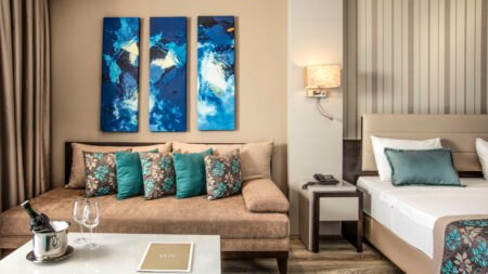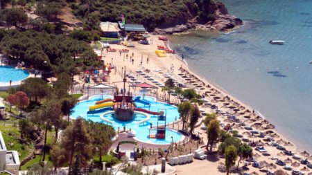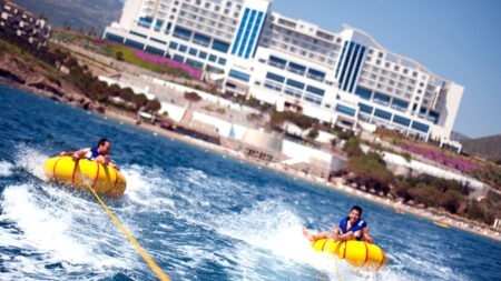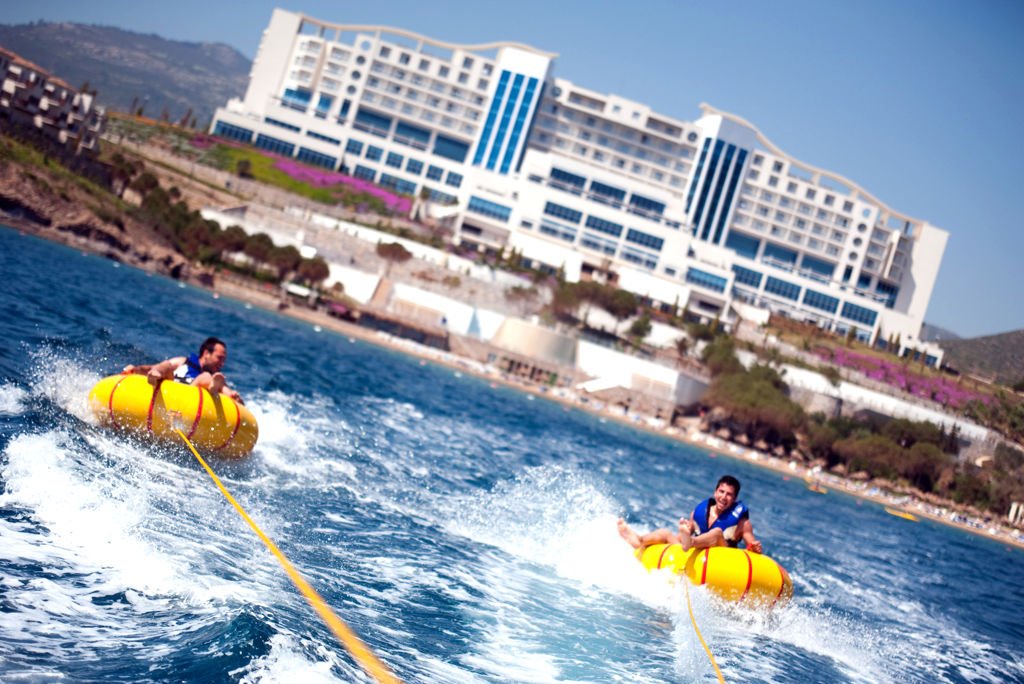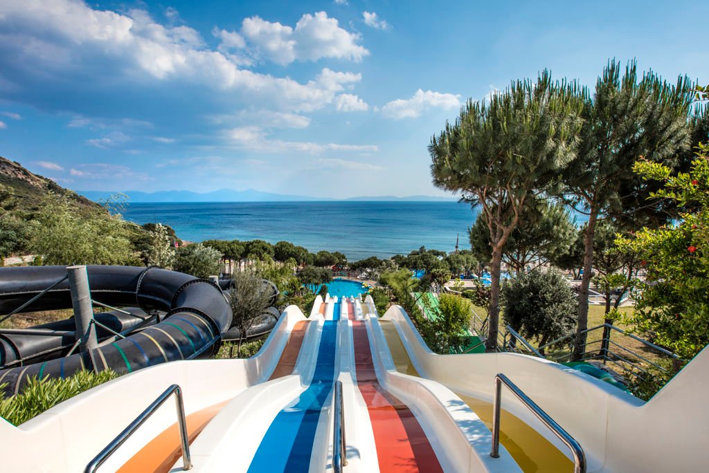 Zomer Wanneer je tussen 01-04-2025 en 31-10-2025 in deze accommodatie verblijft, is onderstaande informatie van toepassing. * Ligging * Gelegen op een heuvel * Gelegen aan het privéstrand * Zandstrand * Ligbedden met matrasjes * Parasol * Dichtstbijzijnde restaurant op circa 5 kilometer * Dichtstbijzijnde bar op circa 5 kilometer * Kusadasi op circa 35 kilometer * Ozdere op circa 5 kilometer * Bushalte (op loopafstand) * Algemeen & faciliteiten * Meerdere gebouwen * Maximaal 6 verdiepingen * 493 kamers * Receptie * 24 uur per dag * Lobby * 4 liften * Bagageruimte * Wifi in alle openbare ruimtes * Meerdere winkels * Minimarkt * Wasservice tegen betaling * Doktersservice tegen betaling * Tuin * Privé parkeergelegenheid * Restaurants & bars * Buffetrestaurant * 3 à-la-carterestaurants (vooraf reserveren) * Italiaans restaurant * Turks restaurant * Visrestaurant * Roomservice tegen betaling * 4 drinkgelegenheden * Bar * Beachbar * Poolbar * Terrace bar * Activiteiten & ontspanning * Aerobics * Beachvolleybal * Biljart tegen betaling * Boogschieten * Bowling tegen betaling * Darts * Duikcentrum tegen betaling * Fitness * Midgetgolf * Tafeltennis * Tennis * Watersporten tegen betaling * Spafaciliteiten * Sauna tegen betaling * Hamam tegen betaling * Massages tegen betaling * Schoonheidsbehandelingen tegen betaling * Gameroom * Animatie * Shows * Zwembaden * Buitenzwembad * Aquapark * Open tussen ca. donderdag 15 mei 2025 en dinsdag 30 september 2025 * Buitenzwembad * Buitenzwembad voor kinderen * 8 glijbanen voor volwassenen en kinderen * Binnenzwembad * Open tussen ca. dinsdag 1 april 2025 en donderdag 15 mei 2025 & maandag 15 september 2025 en vrijdag 31 oktober 2025 * Zonneterras * Ligbedden met matrasjes * Parasol * Badhanddoekenservice * Kinderfaciliteiten * Mini club (4-12 jaar) * 6 keer per week * Minidisco * Babybedje * Verzorging * All Inclusive * Ontbijt in buffetvorm (07.00-10.00 uur) * Laat ontbijt in buffetvorm (10.00-11.00 uur) * Lunch in buffetvorm (13.00-14.30 uur) * Diner in buffetvorm (19.00-21.30 uur) * Dineren in één van de à-la-carterestaurants 1 keer per verblijf bij een verblijf van minimaal 7 nachten * Snacks (11.00-17.00 uur) * Koffie, thee & koekjes (17.00-18.00 uur) * IJs (14.00-15.30 uur) * Middernachtsnack (22.00-07.00 uur) * Selectie lokale (non-)alcoholische drankjes (24 uur per dag) * Tegen betaling: alle consumpties in één van de bars, turkse koffie en verse vruchtensappenHotelkamers * 2-persoonskamer Club Landzicht DCL * Oppervlakte van circa 30 m² * In een bijgebouw * Op de begane grond * Landzicht * Airconditioning * Kluisje * Satelliettelevisie * Telefoon tegen betaling * Eet- en drinkfaciliteiten * Koffie- en theefaciliteiten * Minibar * Badkamer met inloopdouche, toilet en föhn * Wifi * Terras (zitje) * 2-persoonskamer Deluxe Landzicht in het hoofdgebouw DD1 * Oppervlakte van circa 31 m² * In het hoofdgebouw * Landzicht * Airconditioning * Kluisje * Satelliettelevisie * Telefoon tegen betaling * Eet- en drinkfaciliteiten * Koffie- en theefaciliteiten * Minibar * Badkamer met inloopdouche, toilet en föhn * Wifi * Balkon (zitje) * 2-persoonskamer Deluxe Zeezicht in het hoofdgebouw DD2 * Oppervlakte van circa 31 m² * In het hoofdgebouw * Zeezicht * Airconditioning * Kluisje * Satelliettelevisie * Telefoon tegen betaling * Eet- en drinkfaciliteiten * Koffie- en theefaciliteiten * Minibar * Badkamer met inloopdouche, toilet en föhn * Wifi * Balkon (zitje) * Familiekamer Club Landzicht FCL * Oppervlakte van circa 48 m² * In een bijgebouw * Landzicht * 2 slaapkamers * Airconditioning * Kluisje * Satelliettelevisie * Telefoon tegen betaling * Eet- en drinkfaciliteiten * Koffie- en theefaciliteiten * Minibar * Badkamer met inloopdouche, toilet en föhn * Wifi * Terras (zitje) * Familiekamer Club Gedeeltelijk uitzicht FCY * Oppervlakte van circa 48 m² * In een bijgebouw * Zijzeezicht * 2 slaapkamers * Airconditioning * Kluisje * Satelliettelevisie * Telefoon tegen betaling * Eet- en drinkfaciliteiten * Koffie- en theefaciliteiten * Minibar * Badkamer met inloopdouche, toilet en föhn * Wifi * Terras (zitje) * Familiekamer Club Zeezicht FCM * Oppervlakte van circa 48 m² * In een bijgebouw * Zeezicht * 2 slaapkamers * Airconditioning * Kluisje * Satelliettelevisie * Telefoon tegen betaling * Eet- en drinkfaciliteiten * Koffie- en theefaciliteiten * Minibar * Badkamer met inloopdouche, toilet en föhn * Wifi * Terras (zitje) * Suite Club Zeezicht UCM * Zeezicht * Airconditioning * Kluisje * Satelliettelevisie * Telefoon tegen betaling * Eet- en drinkfaciliteiten * Koffie- en theefaciliteiten * Minibar * Badkamer met inloopdouche, toilet en föhn * Wifi * Balkon of terras (zitje)