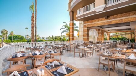 Zomer Wanneer je tussen 01-04-2026 en 26-11-2026 in deze accommodatie verblijft, is onderstaande informatie van toepassing. * Ligging * In het centrum van Okurcalar * Privéstrand * Zandstrand * Kiezelstrand * Ligbedden met matrasjes * Parasol * Dichtstbijzijnde winkel op circa 750 meter * Dichtstbijzijnde restaurant op circa 300 meter * Dichtstbijzijnde bar op circa 300 meter * Manavgat op circa 23 kilometer * Alanya op circa 35 kilometer * Bushalte op circa 500 meter * Algemeen & faciliteiten * 1 gebouw * Maximaal 5 verdiepingen * 360 kamers * Receptie * 24 uur per dag * Lobby * 4 liften * Bagageruimte * Wifi in alle openbare ruimtes * Winkel (minimarkt) * Wasservice tegen betaling * Doktersservice tegen betaling * Tuin * Openbare parkeergelegenheid * Privé parkeergelegenheid * Restaurants & bars * Buffetrestaurant * 3 à-la-carterestaurants * Aziatisch restaurant * Restaurant met verschillende specialiteiten * Turks restaurant * Snackbar * Roomservice tegen betaling * 6 drinkgelegenheden * Bar * Beachbar * Discobar * Koffiecorner * Lobbybar * Poolbar * Activiteiten & ontspanning * Aerobics * Beachvolleybal * Biljart * Boccia * Boogschieten * Bowling * Darts * Fitness * Tafeltennis * Watersporten tegen betaling * Yoga * Spa Center * Sauna * Hamam behandelingen tegen betaling * Massages tegen betaling * Schoonheidsbehandelingen tegen betaling * Gameroom * Shows * Livemuziek * Zwembaden * 2 buitenzwembaden * Eén van deze zwembaden heeft 5 glijbanen * De glijbanen hebben verschillende openingsperiodes * 2 buitenzwembaden voor kinderen * Eén van deze zwembaden heeft 3 glijbanen * De glijbanen hebben verschillende openingsperiodes * Bubbelbad buiten * Binnenzwembad * Open tussen ca. april en november * Verwarmd * Zonneterras * Ligbedden met matrasjes * Parasol * Badhanddoekenservice * Kinderfaciliteiten * Mini club (4-12 jaar) * 7 keer per week * Teenage club (13-16 jaar) * Minidisco * Buitenspeeltuin * Babybedje als preferentie toe te voegen in het boekingsformulier * Verzorging * Ultra All Inclusive * Ontbijt in buffetvorm (07.00-10.00 uur) * Laat ontbijt in buffetvorm (10.00-10.30 uur) * Lunch in buffetvorm (12.30-14.30 uur) * Diner in buffetvorm (18.30-21.00 uur) * Dineren in één van de à-la-carterestaurants 1 keer per verblijf bij een verblijf van minimaal 7 nachten * Snacks (12.00-16.00 uur) * Koffie, thee & koekjes * IJs (24 uur per dag) * Middernachtsnack * Selectie geïmporteerde drankjes * Selectie lokale (non-)alcoholische drankjes (24 uur per dag) * Tegen betaling: overige geïmporteerde drankjes en roomserviceHotelkamers * 2-persoonskamer Standaard Landzicht DZL * Oppervlakte van circa 29 m² * Landzicht * Airconditioning * Kluisje * Televisie * Telefoon tegen betaling * Eet- en drinkfaciliteiten * Koffie- en theefaciliteiten * Minibar * Badkamer douche, toilet, föhn, badjassen en badslippers * Wifi * Balkon (zitje) * 2-persoonskamer Standaard Zijzeezicht DZI * Oppervlakte van circa 29 m² * Zijzeezicht * Airconditioning * Kluisje * Televisie * Telefoon tegen betaling * Eet- en drinkfaciliteiten * Koffie- en theefaciliteiten * Minibar * Badkamer bad of douche, toilet, föhn, badjassen en badslippers * Wifi * Balkon (zitje) * 2-persoonskamer Standaard Zeezicht DZM * Oppervlakte van circa 29 m² * Zeezicht * Airconditioning * Kluisje * Televisie * Telefoon tegen betaling * Eet- en drinkfaciliteiten * Koffie- en theefaciliteiten * Minibar * Badkamer douche, toilet, föhn, badjassen en badslippers * Wifi * Balkon (zitje) * 2-persoonskamer Superior Landzicht DSL * Oppervlakte van circa 34 m² * Landzicht * Eén grote kamer * Airconditioning * Kluisje * Televisie * Telefoon tegen betaling * Eet- en drinkfaciliteiten * Koffie- en theefaciliteiten * Minibar * Badkamer bad of douche, toilet, föhn, badjassen en badslippers * Wifi * Balkon (zitje) * Familiekamer Standaard FZ1 * Oppervlakte van circa 39 m² * Landzicht * Eén grote kamer met tussendeur * Airconditioning * Kluisje * Televisie * Telefoon tegen betaling * Eet- en drinkfaciliteiten * Koffie- en theefaciliteiten * Minibar * Badkamer douche, toilet, föhn, badjassen en badslippers * Wifi * Balkon (zitje) * Familiekamer Standaard FZ2 * Oppervlakte van circa 39 m² * Landzicht * Eén grote kamer met tussendeur * Airconditioning * Kluisje * Televisie * Telefoon tegen betaling * Eet- en drinkfaciliteiten * Koffie- en theefaciliteiten * Minibar * Badkamer douche, toilet, föhn, badjassen en badslippers * Wifi * Balkon (zitje)
