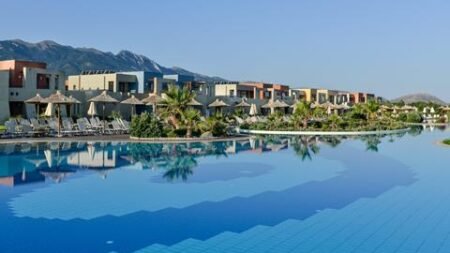 Zeg je luxe en perfecte service, dan zeg je Astir Odysseus. Dit fijne 5 sterrenhotel is een pareltje in het rustige Tigaki. Wat een prachtig breed zwembad met uitzicht op zee! In de restaurants smul je van heerlijke gerechten, je proeft dat hier aandacht aan is besteed. Je kamers zijn ruim en comfortabel, bijna beter dan thuis. En het enthousiaste personeel staat dag in dag uit klaar om je een onvergetelijke vakantie te bezorgen.