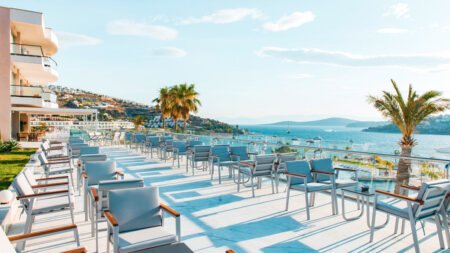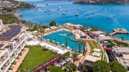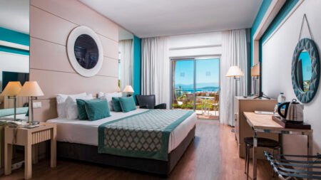 Zomer Wanneer je tussen 01-05-2025 en 31-10-2025 in deze accommodatie verblijft, is onderstaande informatie van toepassing. * Ligging * Privéstrand * Zandstrand * Ligbedden met matrasjes * Parasol * Dichtstbijzijnde winkel op circa 300 meter * Dichtstbijzijnde restaurant op circa 100 meter * Dichtstbijzijnde bar op circa 100 meter * Gundogan op circa 300 meter * Bodrum op circa 30 kilometer * Algemeen & faciliteiten * 6 gebouwen * Maximaal 3 verdiepingen * 212 kamers * Receptie * 24 uur per dag * Lobby * 5 liften * Lift in elk gebouw * Bagageruimte * Wifi in alle openbare ruimtes * Meerdere winkels * Minimarkt * Wasservice tegen betaling * Doktersservice tegen betaling * op aanvraag * Tuin * Privé parkeergelegenheid * Restaurants & bars * Buffetrestaurant * À-la-carterestaurant tegen bijbetaling * Roomservice tegen betaling * 3 drinkgelegenheden * 3 bars * Activiteiten & ontspanning * Aerobics tegen betaling * Basketbal * Biljart tegen betaling * Bowling tegen betaling * Darts * Duikcentrum tegen betaling * Fitness * Tafeltennis tegen betaling * Tennis * Watersporten tegen betaling * Yoga tegen betaling * Spa Center * Sauna * Hamam * Massages tegen betaling * Schoonheidsbehandelingen tegen betaling * Gameroom * Animatie voor kinderen * Shows * Livemuziek * Zwembaden * Buitenzwembad * 2 buitenzwembaden voor kinderen * Eén van deze zwembaden heeft 2 glijbanen * Binnenzwembad * Zonneterras * Ligbedden met matrasjes * Parasol * Badhanddoekenservice * Kinderfaciliteiten * Mini club (4-12 jaar) * Minidisco * Buitenspeeltuin * Babybedje als preferentie toe te voegen in het boekingsformulier * Babysitservice tegen betaling * ter plaatse op aanvraag * Verzorging * Ultra All Inclusive * Ontbijt in buffetvorm (07.00-10.00 uur) * Laat ontbijt in buffetvorm (10.00-11.00 uur) * Lunch in buffetvorm (12.00-17.00 uur) * Diner in buffetvorm (19.00-22.00 uur) * Snacks (12.00-17.00 uur) * Koffie, thee & koekjes (10.00-18.00 uur) * IJs (10.00-18.00 uur) * Middernachtsnack (00.00-01.00 uur) * Selectie geïmporteerde alcoholische drankjes (24 uur per dag) * Selectie lokale (non-)alcoholische drankjes (24 uur per dag) * Tegen betaling: dineren in het à-la-carterestaurant, import drankjes en roomserviceHotelkamers * 2-persoonskamer Deluxe Tuinzicht DDG * Oppervlakte tussen 28 en 30 m² * Tuinzicht * Airconditioning * Kluisje * Televisie * Telefoon tegen betaling * Eet- en drinkfaciliteiten * Koffie- en theefaciliteiten * Minibar * Badkamer douche, toilet en föhn * Wifi * Balkon of terras (zitje) * 2-persoonskamer Deluxe Zeezicht DDM * Oppervlakte tussen 28 en 30 m² * Zeezicht * Airconditioning * Kluisje * Televisie * Telefoon tegen betaling * Eet- en drinkfaciliteiten * Koffie- en theefaciliteiten * Minibar * Badkamer douche, toilet en föhn * Wifi * Balkon of terras (zitje) * 2-persoonskamer Premium Privétuin Terras DR1 * Oppervlakte tussen 28 en 30 m² * Tuinzicht * Airconditioning * Kluisje * Televisie * Telefoon tegen betaling * Eet- en drinkfaciliteiten * Koffie- en theefaciliteiten * Minibar * Badkamer douche, toilet en föhn * Wifi * Terras (zitje) * 2-persoonskamer Premium DR2 * Oppervlakte van circa 35 m² * Airconditioning * Kluisje * Televisie * Telefoon tegen betaling * Eet- en drinkfaciliteiten * Koffie- en theefaciliteiten * Minibar * Badkamer douche, toilet en föhn * Wifi * Balkon of terras (zitje) * 2-persoonskamer Premium Tuinzicht DRG * Tuinzicht * Airconditioning * Kluisje * Televisie * Telefoon tegen betaling * Eet- en drinkfaciliteiten * Koffie- en theefaciliteiten * Minibar * Badkamer douche, toilet en föhn * Wifi * Balkon of terras (zitje) * 2-persoonskamer Premium Zeezicht DRM * Zeezicht * Airconditioning * Kluisje * Televisie * Telefoon tegen betaling * Eet- en drinkfaciliteiten * Koffie- en theefaciliteiten * Minibar * Badkamer douche, toilet en föhn * Wifi * Balkon of terras (zitje) * 2-persoonskamer Terras (Wood) DT1 * Oppervlakte tussen 28 en 30 m² * Airconditioning * Kluisje * Televisie * Telefoon tegen betaling * Eet- en drinkfaciliteiten * Koffie- en theefaciliteiten * Minibar * Badkamer douche, toilet en föhn * Wifi * Terras (zitje) * Suite (Senior) U1 * Oppervlakte van circa 70 m² * Tuinzicht * Woon-/slaapkamer * Slaapbank voor twee personen * Eén slaapkamer * Airconditioning * Kluisje * Televisie * Telefoon tegen betaling * Eet- en drinkfaciliteiten * Koffie- en theefaciliteiten * Minibar * Badkamer douche, toilet en föhn * Wifi * Balkon of terras (zitje) * Suite Premium UR * Oppervlakte van circa 60 m² * Woon-/slaapkamer * Slaapbank voor één persoon * Eén slaapkamer * Airconditioning * Kluisje * Televisie * Telefoon tegen betaling * Eet- en drinkfaciliteiten * Koffie- en theefaciliteiten * Minibar * Badkamer douche, toilet en föhn * Wifi * Terras (zitje)