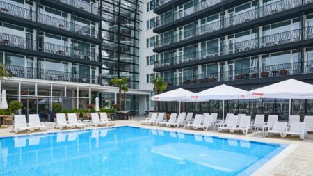 Zomer Wanneer je tussen 16-05-2025 en 30-09-2025 in deze accommodatie verblijft, is onderstaande informatie van toepassing. * Ligging * Openbaar strand Sunny Beach op circa 200 meter * Zandstrand * Centrum op circa 600 meter * Dichtstbijzijnde winkel op circa 10 meter * Dichtstbijzijnde restaurant op circa 10 meter * Dichtstbijzijnde bar op circa 150 meter * Nessebar op circa 5 kilometer * Bushalte op circa 200 meter * Taxistandplaats op circa 10 meter * Algemeen & faciliteiten * 1 gebouw * Maximaal 5 verdiepingen * 221 kamers * Receptie * 24 uur per dag * Lobby * 2 liften * Bagageruimte * Wifi in alle openbare ruimtes * Doktersservice tegen betaling * Tuin * Privé parkeergelegenheid tegen betaling * Restaurants & bars * Restaurant * 2 drinkgelegenheden * Bar * Poolbar * Activiteiten & ontspanning * Darts * Zwembaden * Buitenzwembad * Zoetwater * Buitenzwembad voor kinderen * Zoetwater * Kinderfaciliteiten * Babybedje op aanvraag via ons contact center * Verzorging * All Inclusive * Ontbijt in buffetvorm (07.30-10.00 uur) * Lunch in buffetvorm (12.00-14.30 uur) * Diner in buffetvorm (18.30-21.00 uur) * Snacks (16.00-17.00 uur) * Koffie, thee & koekjes (16.00-17.00 uur) * IJs (16.00-17.00 uur) * Selectie lokale (non-)alcoholische drankjes (11.00-23.00 uur)Hotelkamers * 2-persoonskamer Standaard DZ * Oppervlakte circa 27 m² * Straatzicht * Airconditioning * Kluisje * Televisie * Telefoon tegen betaling * Eet- en drinkfaciliteiten * Mini koelkast * Badkamer met douche, toilet en föhn * Wifi * Balkon (zitje)