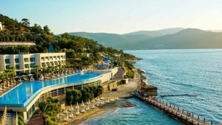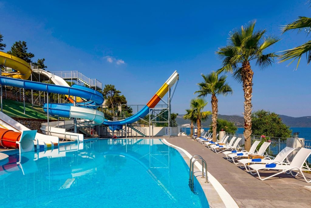 Zomer Wanneer je tussen 01-05-2026 en 30-10-2026 in deze accommodatie verblijft, is onderstaande informatie van toepassing. * Ligging * Gelegen op een heuvel * Gelegen aan het privéstrand * Zandstrand * Kiezelstrand * Ligbedden met matrasjes * Parasol * Centrum van Torba op circa 5 kilometer * Dichtstbijzijnde winkel op circa 10 kilometer * Dichtstbijzijnde restaurant op circa 5 kilometer * Dichtstbijzijnde bar op circa 10 kilometer * Bodrum op circa 10 kilometer * Bushalte op circa 10 meter * Algemeen & faciliteiten * 3 gebouwen * Maximaal 3 verdiepingen * 350 kamers * Receptie * 24 uur per dag * 3 liften * Lift in elk gebouw * Bagageruimte * Wifi in alle openbare ruimtes * 2 winkels * Minimarkt * Wasservice tegen betaling * Doktersservice tegen betaling * op aanvraag * Privé parkeergelegenheid * Restaurants & bars * Buffetrestaurant * 3 à-la-carterestaurants (vooraf reserveren) * Italiaans restaurant tegen bijbetaling * Turks restaurant tegen bijbetaling * Visrestaurant * 6 drinkgelegenheden * Bar * 2 beachbars * Lobbybar * 2 poolbars * Activiteiten & ontspanning * Aerobics * Basketbal * Darts * Fitness * Tafeltennis * Watersporten tegen betaling * Yoga * Spa Center * Binnenzwembad * Open tussen ca. vrijdag 1 mei 2026 en zondag 31 mei 2026 & donderdag 1 oktober 2026 en zaterdag 31 oktober 2026 * Sauna * Hamam behandelingen tegen betaling * Massages tegen betaling * Schoonheidsbehandelingen tegen betaling * Animatie voor volwassenen * 7 keer per week * Shows * 7 keer per week * Livemuziek * 2 keer per week * Zwembaden * 5 buitenzwembaden * Eén van deze zwembaden heeft 4 glijbanen * De glijbanen hebben verschillende openingsperiodes * 2 buitenzwembaden voor kinderen * Zonneterras * Ligbedden met matrasjes * Parasol * Badhanddoekenservice * Kinderfaciliteiten * Mini club (4-12 jaar) * 6 keer per week * Minidisco * Buitenspeeltuin * Babybedje als preferentie toe te voegen in het boekingsformulier * Verzorging * Ultra All Inclusive * Ontbijt in buffetvorm (07.00-10.00 uur) * Laat ontbijt in buffetvorm (10.00-10.30 uur) * Lunch in buffetvorm (12.30-14.00 uur) * Diner in buffetvorm (19.00-21.30 uur) * Dineren in één van de à-la-carterestaurants 1 keer per verblijf bij een verblijf van minimaal 7 nachten * Snacks (12.00-17.00 uur) * Koffie, thee & koekjes (17.00-19.00 uur) * IJs (16.00-17.00 uur) * Middernachtsnack (00.00-02.00 uur) * Selectie geïmporteerde drankjes * Selectie lokale (non-)alcoholische drankjes (24 uur per dag) * Verse vruchtensappen (07.00-10.00 uur) * Tegen betaling: dineren in enkele à-la-carterestaurants, alle consumpties in de discotheek, overige geïmporteerde drankjes en energiedranken * Goed om te weten * Deze accommodatie is niet geschikt voor mensen die slecht ter been zijn * Deze accommodatie heeft veel hoogteverschillen * Duurzaamheidslabel(s): Green KeyHotelkamers * 2-persoonskamer Club DC * Oppervlakte van circa 20 m² * Airconditioning * Kluisje * Televisie * Telefoon tegen betaling * Eet- en drinkfaciliteiten * Koffie- en theefaciliteiten * Minibar * Badkamer inloopdouche, toilet en föhn * Wifi * Geen balkon of terras * 2-persoonskamer Club Zeezicht DCM * Oppervlakte van circa 20 m² * Zeezicht * Airconditioning * Kluisje * Televisie * Telefoon tegen betaling * Eet- en drinkfaciliteiten * Koffie- en theefaciliteiten * Minibar * Badkamer inloopdouche, toilet en föhn * Wifi * Balkon of terras * 2-persoonskamer Deluxe DD * Oppervlakte van circa 40 m² * Zeezicht * Airconditioning * Kluisje * Televisie * Telefoon tegen betaling * Eet- en drinkfaciliteiten * Koffie- en theefaciliteiten * Minibar * Badkamer inloopdouche, toilet, föhn en badslippers * Wifi * Balkon * Familiekamer Club Landzicht FCL * Oppervlakte van circa 35 m² * Tuinzicht * 2 slaapkamers * Airconditioning * Kluisje * Televisie * Telefoon tegen betaling * Eet- en drinkfaciliteiten * Koffie- en theefaciliteiten * Minibar * Badkamer inloopdouche, toilet en föhn * Wifi * Geen balkon of terras * Familiekamer Deluxe Zeezicht FDM * Oppervlakte van circa 55 m² * Zeezicht * 2 slaapkamers * Airconditioning * Kluisje * Televisie * Telefoon tegen betaling * Eet- en drinkfaciliteiten * Koffie- en theefaciliteiten * Minibar * Badkamer douche, toilet, föhn en badslippers * Wifi * Balkon
