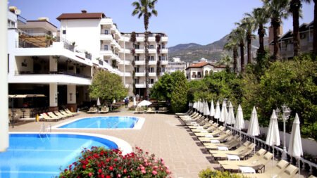 Zomer Wanneer je tussen 22-04-2026 en 31-10-2026 in deze accommodatie verblijft, is onderstaande informatie van toepassing. * Ligging * Openbaar strand op circa 50 meter * Centrum van Alanya op circa 300 meter * Dichtstbijzijnde winkel op circa 50 meter * Dichtstbijzijnde restaurant op circa 50 meter * Dichtstbijzijnde bar op circa 50 meter * Bushalte op circa 50 meter * Algemeen & faciliteiten * Kindvriendelijk complex * 2 gebouwen * Maximaal 5 verdiepingen * 116 kamers * Receptie * 24 uur per dag * Lobby * 3 liften * Lift in elk gebouw * Bagageruimte * Wifi in diverse openbare ruimtes * Doktersservice tegen betaling * op aanvraag * Tuin * Openbare parkeergelegenheid tegen betaling * Restaurants & bars * Buffetrestaurant * À-la-carterestaurant (vooraf reserveren) * Restaurant met verschillende specialiteiten * Snackbar * 3 drinkgelegenheden * Beachbar tegen betaling * Lobbybar * Poolbar * Activiteiten & ontspanning * Biljart tegen betaling * Fitness * Tafeltennis * Spa Center * Sauna tegen betaling * Hamam tegen betaling * Massages tegen betaling * Schoonheidsbehandelingen tegen betaling * Livemuziek * Eén keer per week * Zwembaden * 2 buitenzwembaden * Buitenzwembad voor kinderen * Zonneterras * Ligbedden met matrasjes * Parasol * Badhanddoekenservice tegen betaling * Kinderfaciliteiten * Buitenspeeltuin * Babybedje als preferentie toe te voegen in het boekingsformulier * Verzorging * All Inclusive * Ontbijt in buffetvorm (07.30-10.00 uur) * Laat ontbijt in buffetvorm (10.00-10.30 uur) * Lunch in buffetvorm (12.30-14.00 uur) * Diner in buffetvorm (19.00-21.00 uur) * Dineren in het à-la-carterestaurant 1 keer per verblijf * Snacks (11.00-16.00 uur) * Koffie, thee & koekjes (16.00-17.00 uur) * IJs (14.00-15.00 uur) * Middernachtsnack (23.00-23.30 uur) * Selectie lokale (non-)alcoholische drankjes (10.00-23.00 uur) * Tegen betaling: alle consumpties in één van de bars, drankjes na 23.00 uur en import drankjesHotelkamers * 1-persoonskamer Standaard EZ * Oppervlakte circa 25 m² * Airconditioning * Kluisje tegen betaling * Televisie * Telefoon tegen betaling * Eet- en drinkfaciliteiten * Minibar * Badkamer douche, toilet en föhn * Balkon (zitje) * 2-persoonskamer Voordeel DE * Speciaal tarief * Locatie, formaat, uitzicht en/of faciliteiten kunnen afwijken ten opzichte van andere kamertypes * Oppervlakte circa 25 m² * Airconditioning * Kluisje tegen betaling * Televisie * Telefoon tegen betaling * Eet- en drinkfaciliteiten * Minibar * Badkamer douche, toilet en föhn * Balkon (zitje) * 2-persoonskamer Standaard DZ * Oppervlakte circa 25 m² * Airconditioning * Kluisje tegen betaling * Televisie * Telefoon tegen betaling * Eet- en drinkfaciliteiten * Minibar * Badkamer douche, toilet en föhn * Balkon (zitje)