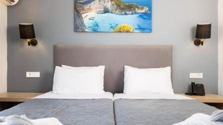 Direct naar: * Ligging () * Faciliteiten () * Restaurants & bars () * Zwembaden () * Hotelkamers () * Activiteiten & ontspanning () * Kinderfaciliteiten () * Verzorging () Ligging Cameo Beach Resort * Gelegen in Laganas * Koukla Beach op 100 meter * Laganas Beach op 1,8 kilometer * Dichtsbijzijnde winkeltjes, restaurants en bars op ca. 1,4 kilometer Faciliteiten * Meerdere gebouwen * 24-uursreceptie * Lobby * Bagageruimte * Wifi * Wasservice* * Openbare parkeergelegenheid *Tegen betaling Restaurants & bars * 1 à-la-carterestaurant * Poolbar Zwembaden * 2 buitenzwembaden * Zonneterras * Ligbedden, badhanddoekenservice en parasols gratis (zwembad) Hotelkamers * Standaardkamer Landzicht (1-3 personen) * Ca. 14 m² * Telefoon* * Airconditioning * Televisie * Koelkastje * Kluisje * Koffie-/theezetfaciliteiten * Wifi * Douche * Toilet * Föhn * Balkon of terras met zitje * Tegen een meerprijs boekbaar met zwembadzicht of zeezicht *Tegen betaling * Familiekamer Landzicht (2-4 personen) * Ca. 26 m² * Aparte slaapkamer * Bedbank * Dezelfde faciliteiten als de standaardkamer * Tegen een meerprijs boekbaar met zwembadzicht of zeezicht Activiteiten & ontspanning * Massages* * Livemuziek *Tegen betaling Kinderfaciliteiten * Miniclub * Speeltuin Verzorging Zomer: Cameo Beach Resort * Verblijf o.b.v. Logies & Ontbijt: ontbijt in buffetvorm * Tegen een meerprijs verblijf je o.b.v. All Inclusive: * Ontbijt * Lunch * Diner * Diverse snacks * Koffie/thee en koekjes * Geselecteerde lokale (non-)alcoholische dranken en een selectie import dranken (24/7) (10-23 uur)