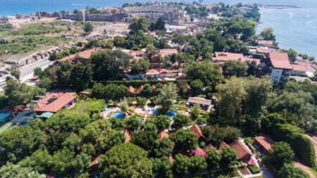 Zomer Wanneer je tussen 01-04-2026 en 08-11-2026 in deze accommodatie verblijft, is onderstaande informatie van toepassing. * Ligging * In het centrum van Side * Gelegen aan het privéstrand * Ligbedden met matrasjes * Parasol * Dichtstbijzijnde winkel op circa 20 meter * Dichtstbijzijnde restaurant op circa 20 meter * Dichtstbijzijnde bar op circa 20 meter * Bushalte op circa 500 meter * Algemeen & faciliteiten * 203 bungalows * Receptie * 24 uur per dag * Lobby * Bagageruimte * Wifi in alle openbare ruimtes * Meerdere winkels * Minimarkt * Wasservice tegen betaling * Doktersservice tegen betaling * Tuin * Openbare parkeergelegenheid * Privé parkeergelegenheid * Restaurants & bars * Buffetrestaurant * 2 à-la-carterestaurants (vooraf reserveren) tegen bijbetaling * Snackbar * Patisserie * Meerdere drinkgelegenheden * 5 bars * Activiteiten & ontspanning * Aerobics * Darts * Fitness * Tafeltennis * Volleybal * Watersporten tegen betaling * Spafaciliteiten * Sauna * Turks stoombad * Massages tegen betaling * Schoonheidsbehandelingen tegen betaling * Animatie voor volwassenen * 7 keer per week * Zwembaden * 2 buitenzwembaden * Eén van deze zwembaden heeft 2 glijbanen * 2 buitenzwembaden voor kinderen * Zonneterras * Ligbedden met matrasjes * Parasol * Badhanddoekenservice * Kinderfaciliteiten * Mini club (4-12 jaar) * Minidisco * Buitenspeeltuin * Babybedje als preferentie toe te voegen in het boekingsformulier * Verzorging * All Inclusive * Ontbijt in buffetvorm (07.00-10.00 uur) * Laat ontbijt in buffetvorm (10.00-10.30 uur) * Lunch in buffetvorm (12.30-14.00 uur) * Diner in buffetvorm (19.00-21.00 uur) * Snacks (12.00-15.00 uur) * Koffie, thee & koekjes (10.00-18.00 uur) * IJs (10.00-18.00 uur) * Middernachtsnack (23.00-00.00 uur) * Selectie lokale (non-)alcoholische drankjes (10.00-00.00 uur) * Tegen betaling: dineren in alle à-la-carterestaurants en import drankjesHotelkamers * 2-persoonskamer Standaard DZ * Oppervlakte van circa 18 m² * Airconditioning * Kluisje tegen betaling * Televisie * Telefoon tegen betaling * Eet- en drinkfaciliteiten * Koffie- en theefaciliteiten * Minibar * Badkamer douche, toilet, föhn en badslippers * Wifi * Terras (zitje) * Familiekamer Standaard FZ * Oppervlakte van circa 32 m² * Op de begane grond * Woon-/slaapkamer * Slaapbank voor twee personen * Eén slaapkamer * Airconditioning * Kluisje tegen betaling * Televisie * Telefoon tegen betaling * Eet- en drinkfaciliteiten * Koffie- en theefaciliteiten * Minibar * Badkamer douche, toilet, föhn en badslippers * Wifi * Terras (zitje)