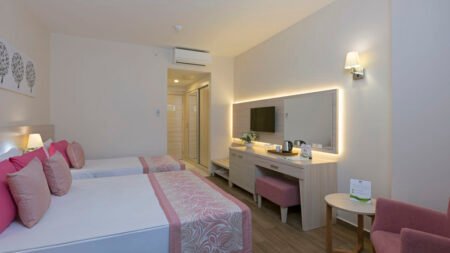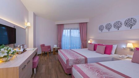 Zomer Wanneer je tussen 28-03-2026 en 07-11-2026 in deze accommodatie verblijft, is onderstaande informatie van toepassing. * Ligging * Privéstrand op circa 600 meter * Centrum van Colakli op circa 1 kilometer * Centrum van Side op circa 10 kilometer * Dichtstbijzijnde winkel op circa 100 meter * Dichtstbijzijnde restaurant op circa 100 meter * Dichtstbijzijnde bar op circa 100 meter * Shuttleservice naar het strand * Bushalte op circa 20 meter * Algemeen & faciliteiten * 7 gebouwen * Maximaal 4 verdiepingen * 313 kamers * Receptie * 24 uur per dag * Lobby * Meerdere liften * Lift in elk gebouw * Bagageruimte * Wifi in alle openbare ruimtes * Meerdere winkels * Wasservice tegen betaling * Doktersservice tegen betaling * Tuin * Openbare parkeergelegenheid * Privé parkeergelegenheid * Restaurants & bars * Buffetrestaurant * 2 à-la-carterestaurants (vooraf reserveren) * Turks restaurant * Open in het zomerseizoen tussen ca. vrijdag 15 mei 2026 en donderdag 15 oktober 2026 * Visrestaurant * Open in het zomerseizoen tussen ca. vrijdag 15 mei 2026 en donderdag 15 oktober 2026 * Meerdere drinkgelegenheden * 6 bars * Activiteiten & ontspanning * Aerobics * Beachvolleybal * Biljart tegen betaling * Boccia * Darts * Duikcentrum tegen betaling * Fitness * Tafeltennis * Tafelvoetbal tegen betaling * Watersporten tegen betaling * Spa Center * Binnenzwembad * Sauna * Hamam * Massages tegen betaling * Schoonheidsbehandelingen tegen betaling * Discotheek * Gameroom toegang tegen betaling * Animatie voor volwassenen * 6 keer per week * Animatie voor kinderen * 6 keer per week * Zwembaden * 2 buitenzwembaden * Eén van deze zwembaden heeft meerdere glijbanen * De glijbanen hebben verschillende openingsperiodes * Buitenzwembad voor kinderen * Zonneterras * Ligbedden met matrasjes * Parasol * Badhanddoekenservice * Kinderfaciliteiten * Mini club (4-12 jaar) * 6 keer per week * Minidisco * 6 keer per week * Buitenspeeltuin * Verzorging * All Inclusive * Ontbijt in buffetvorm (07.00-10.00 uur) * Laat ontbijt in buffetvorm (10.00-10.30 uur) * Lunch in buffetvorm (12.30-14.00 uur) * Diner in buffetvorm (18.30-21.00 uur) * Dineren in één van de geselecteerde à-la-carterestaurants 1 keer per verblijf * Snacks (12.00-15.00 uur) * Koffie, thee & koekjes (14.30-17.30 uur) * IJs (18.30-21.00 uur) * Middernachtsnack (23.30-00.00 uur) * Selectie lokale (non-)alcoholische drankjes (10.00-00.00 uur) * Tegen betaling: drankjes na 00.00 uur en import drankjesHotelkamers * 2-persoonskamer Voordeel DE * Speciaal tarief * Faciliteiten kunnen afwijken ten opzichte van andere kamertypes * Locatie, formaat, uitzicht en/of faciliteiten kunnen afwijken ten opzichte van andere kamertypes * Oppervlakte circa 23 m² * Geen uitzicht * Airconditioning * Kluisje tegen betaling * Televisie * Telefoon tegen betaling * Eet- en drinkfaciliteiten * Koffie- en theefaciliteiten * Minibar * Badkamer douche, toilet en föhn * Wifi * Geen balkon of terras * 2-persoonskamer Standaard DZ * Oppervlakte van circa 23 m² * Airconditioning * Kluisje tegen betaling * Televisie * Telefoon tegen betaling * Eet- en drinkfaciliteiten * Koffie- en theefaciliteiten * Minibar * Badkamer douche, toilet en föhn * Wifi * Balkon of terras (zitje) * 2-persoonskamer Standaard Zwembadzicht DZP * Oppervlakte van circa 23 m² * Zwembadzicht * Airconditioning * Kluisje tegen betaling * Televisie * Telefoon tegen betaling * Eet- en drinkfaciliteiten * Koffie- en theefaciliteiten * Minibar * Badkamer douche, toilet en föhn * Wifi * Balkon of terras (zitje) * Familiekamer Standaard FZ * Oppervlakte van circa 33 m² * Eén grote kamer met tussendeur * Airconditioning * Kluisje tegen betaling * Televisie * Telefoon tegen betaling * Eet- en drinkfaciliteiten * Koffie- en theefaciliteiten * Minibar * Badkamer douche, toilet en föhn * Wifi * Balkon of terras (zitje)