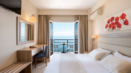 Zomer Wanneer je tussen 25-04-2026 en 20-10-2026 in deze accommodatie verblijft, is onderstaande informatie van toepassing. * Ligging * Gelegen op een heuvel * Privéstrand op circa 50 meter * Kiezelstrand * Ligbedden * Parasol * Centrum van Benitses op circa 3 kilometer * Dichtstbijzijnde winkel op circa 3 kilometer * Dichtstbijzijnde restaurant op circa 300 meter * Dichtstbijzijnde bar op circa 3 kilometer * Achilleion Palace op circa 3 kilometer * Kanoni op circa 15 kilometer * Mouse Island op circa 15 kilometer * Church of Saint Spyridon op circa 17 kilometer * Bushalte op circa 20 meter * Algemeen & faciliteiten * 2 gebouwen * Maximaal 5 verdiepingen * 170 kamers * Receptie * 24 uur per dag * Lobby * 2 liften * Lift in elk gebouw * Bagageruimte * Wifi in alle openbare ruimtes * Doktersservice tegen betaling * op aanvraag * Tuin * Privé parkeergelegenheid * Restaurants & bars * Buffetrestaurant * 2 drinkgelegenheden * Bar * Poolbar * Activiteiten & ontspanning * Biljart tegen betaling * Darts * Tafeltennis * Livemuziek- * Zwembaden * Buitenzwembad * Zoutwater * Zonneterras * Ligbedden * Parasol * Badhanddoekenservice * Kinderfaciliteiten * Minidisco * Babybedje als preferentie toe te voegen in het boekingsformulier * Verzorging * All Inclusive * Ontbijt in buffetvorm (07.00-10.30 uur) * Lunch in buffetvorm (12.30-14.30 uur) * Diner in buffetvorm (18.30-21.30 uur) * Snacks (10.30-12.30 uur en 14.30-18.30 uur) * Koffie, thee & koekjes (10.00-23.00 uur) * IJs (10.00-23.00 uur) * Middernachtsnack (21.30-23.00 uur) * Selectie lokale (non-)alcoholische drankjes (10.00-23.00 uur)Hotelkamers * 2-persoonskamer Standaard Bergzicht DZ1 * Oppervlakte van circa 18 m² * Gerenoveerd * Bergzicht * Airconditioning * Kluisje * Televisie * Telefoon tegen betaling * Eet- en drinkfaciliteiten * Koffie- en theefaciliteiten * Mini koelkast * Badkamer douche, toilet, föhn en badslippers * Wifi * Balkon of terras (zitje) * 2-persoonskamer Standaard Zijzeezicht DZI * Oppervlakte van circa 18 m² * Gerenoveerd * Zijzeezicht * Airconditioning * Kluisje * Televisie * Telefoon tegen betaling * Eet- en drinkfaciliteiten * Koffie- en theefaciliteiten * Mini koelkast * Badkamer douche, toilet, föhn en badslippers * Wifi * Balkon (zitje) * 2-persoonskamer Standaard Zeezicht DZM * Oppervlakte tussen 18 en 20 m² * Gerenoveerd * Zeezicht * Airconditioning * Kluisje * Televisie * Telefoon tegen betaling * Eet- en drinkfaciliteiten * Koffie- en theefaciliteiten * Mini koelkast * Badkamer douche, toilet, föhn en badslippers * Wifi * Balkon (zitje) * 2-persoonskamer Comfort Voordeel Zijzeezicht DJ1 * Speciaal tarief * Faciliteiten kunnen afwijken ten opzichte van andere kamertypes * Oppervlakte van circa 22 m² * Niet gerenoveerd * Zijzeezicht * Airconditioning * Kluisje * Televisie * Eet- en drinkfaciliteiten * Koffie- en theefaciliteiten * Mini koelkast * Badkamer douche, toilet, föhn en badslippers * Wifi * Balkon (zitje) * 2-persoonskamer Comfort Voordeel Zeezicht DJ2 * Speciaal tarief * Faciliteiten kunnen afwijken ten opzichte van andere kamertypes * Oppervlakte tussen 20 en 22 m² * Niet gerenoveerd * Zeezicht * Airconditioning * Kluisje * Televisie * Eet- en drinkfaciliteiten * Koffie- en theefaciliteiten * Mini koelkast * Badkamer douche, toilet, föhn en badslippers * Wifi * Balkon (zitje) * 2-persoonskamer Comfort Voordeel Zeezicht DJ3 * Speciaal tarief * Faciliteiten kunnen afwijken ten opzichte van andere kamertypes * Oppervlakte tussen 20 en 22 m² * Niet gerenoveerd * Zeezicht * Airconditioning * Kluisje * Televisie * Eet- en drinkfaciliteiten * Koffie- en theefaciliteiten * Mini koelkast * Badkamer douche, toilet, föhn en badslippers * Wifi * Balkon (zitje) * Junior suite Standaard Zeezicht JZM * Oppervlakte van circa 24 m² * Gerenoveerd * Zeezicht * Airconditioning * Kluisje * Televisie * Eet- en drinkfaciliteiten * Koffie- en theefaciliteiten * Mini koelkast * Badkamer douche, toilet, föhn en badslippers * Wifi * Balkon (zitje)
