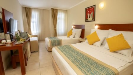 Winter Wanneer je tussen 01-11-2025 en 31-03-2026 in deze accommodatie verblijft, is onderstaande informatie van toepassing. * Ligging * Privéstrand op circa 150 meter * Zandstrand * Rotsstrand * Ligbedden met matrasjes * Parasol * Dichtstbijzijnde winkel op circa 100 meter * Dichtstbijzijnde restaurant op circa 100 meter * Alanya op circa 3 kilometer * Bushalte op circa 150 meter * Algemeen & faciliteiten * Geheel gerenoveerd in 2025 * 2 gebouwen * Maximaal 4 verdiepingen * 146 kamers * Receptie * 24 uur per dag * Lobby * 4 liften * Lift in elk gebouw * Bagageruimte * Wifi in alle openbare ruimtes * Wasservice tegen betaling * Doktersservice tegen betaling * Tuin * Openbare parkeergelegenheid tegen betaling * Restaurants & bars * Buffetrestaurant * 3 drinkgelegenheden * 2 bars * Poolbar * Activiteiten & ontspanning * Aerobics * Fitness * Tafeltennis tegen betaling * Watersporten tegen betaling * Yoga * Spafaciliteiten * Sauna tegen betaling * Hamam tegen betaling * Animatie voor volwassenen * 7 keer per week * Shows * 7 keer per week * Zwembaden * 2 buitenzwembaden * Eén van deze zwembaden is gesloten in het winterseizoen * Eén van deze zwembaden is verwarmd tussen ca. donderdag 27 november 2025 en vrijdag 10 april 2026 * Buitenzwembad voor kinderen * Verwarmd tussen ca. donderdag 27 november 2025 en vrijdag 10 april 2026 * Zonneterras * Ligbedden met matrasjes * Parasol * Badhanddoekenservice * Verzorging * All Inclusive * Ontbijt in buffetvorm (07.00-10.00 uur) * Lunch in buffetvorm (12.30-14.00 uur) * Diner in buffetvorm (17.30-19.30 uur) * Snacks (12.00-22.00 uur) * Koffie, thee & koekjes (12.00-00.00 uur) * IJs (12.00-00.00 uur) * Middernachtsnack (00.00-05.00 uur) * Selectie non-alcoholische drankjes (08.00-05.00 uur) * Selectie alcoholische drankjes (10.30-18.00 uur) * Tegen betaling: import drankjesHotelkamers * 2-persoonskamer Standaard DZ * Oppervlakte tussen 15 en 20 m² * Airconditioning * Kluisje * Televisie * Telefoon tegen betaling * Eet- en drinkfaciliteiten * Koffie- en theefaciliteiten * Minibar tegen betaling * Badkamer douche, toilet, föhn en badslippers * Wifi * Balkon (zitje) * 2-persoonskamer Standaard Zwembadzicht DZP * Oppervlakte tussen 15 en 20 m² * Zwembadzicht * Airconditioning * Kluisje * Televisie * Telefoon tegen betaling * Eet- en drinkfaciliteiten * Koffie- en theefaciliteiten * Minibar tegen betaling * Badkamer douche, toilet, föhn en badslippers * Wifi * Balkon (zitje) * 2-persoonskamer Standaard Zijzeezicht DZI * Oppervlakte tussen 15 en 20 m² * Zijzeezicht * Airconditioning * Kluisje * Televisie * Telefoon tegen betaling * Eet- en drinkfaciliteiten * Koffie- en theefaciliteiten * Minibar tegen betaling * Badkamer douche, toilet, föhn en badslippers * Wifi * Balkon (zitje) * Child Friendly Room CF