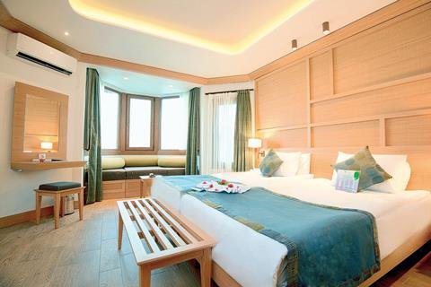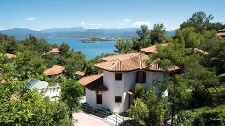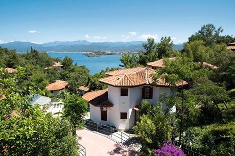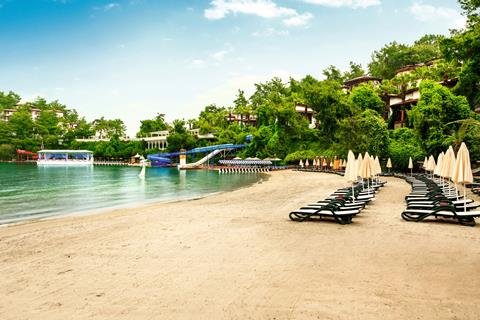 Wat een bijzondere ligging! Uitgestrekt langs de kustlijn van een eigen schiereiland met meerdere privé stranden, is dit hotel net een dorpje. Temidden van de bosrijke natuur vind je je kamer in de bungalowgebouwen, die gebouwd zijn in Ottomaanse stijl. Je wandelt over de lange promenade met uitzicht op zee en passeert de privé stranden en zwembaden. Voordat je gaat zonnen maak je een stop voor een snack en een ijsje; je verblijft immers All Inclusive. Dit wordt een heerlijke vakantie.