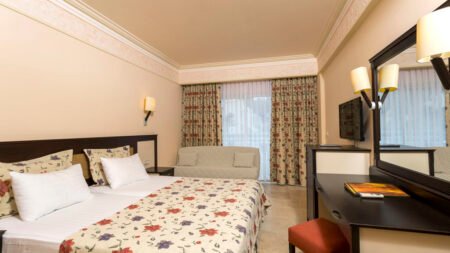Zomer Wanneer je tussen 01-04-2026 en 31-10-2026 in deze accommodatie verblijft, is onderstaande informatie van toepassing. * Ligging * Privéstrand * Aan een boulevard * Ligbedden * Parasol * Dichtstbijzijnde winkel op circa 100 meter * Dichtstbijzijnde restaurant op circa 100 meter * Dichtstbijzijnde bar op circa 100 meter * Side op circa 2 kilometer * Manavgat op circa 8 kilometer * Bushalte op circa 100 meter * Algemeen & faciliteiten * 19 gebouwen * Maximaal 3 verdiepingen * 242 kamers * Receptie * 24 uur per dag * Lobby * 2 liften * Niet in elk gebouw een lift * Bagageruimte * Wifi in alle openbare ruimtes * Meerdere winkels * Minimarkt * Wasservice tegen betaling * Doktersservice tegen betaling * Tuin * Privé parkeergelegenheid * Restaurants & bars * Buffetrestaurant * 3 à-la-carterestaurants * Restaurant met internationale specialiteiten * Turks restaurant * Visrestaurant * 3 drinkgelegenheden * Discobar * Lobbybar * Poolbar * Activiteiten & ontspanning * Aerobics * Basketbal * Beachvolleybal * Biljart * Boccia * Darts * Fitness * Midgetgolf * Squash * Tafeltennis * Tafelvoetbal * Tennis * Watersporten tegen betaling * Yoga * Spafaciliteiten * Sauna * Turks stoombad * Massages tegen betaling * Schoonheidsbehandelingen tegen betaling * Discotheek * Animatie * 6 keer per week * Shows * 6 keer per week * Livemuziek * 2 keer per week * Zwembaden * 2 buitenzwembaden * Eén van deze zwembaden heeft 4 glijbanen * Gesloten in het winterseizoen * 2 buitenzwembaden voor kinderen * Eén van deze zwembaden heeft een glijbaan * Gesloten in het winterseizoen * Zonneterras * Ligbedden * Parasol * Badhanddoekenservice * Kinderfaciliteiten * Mini club (4-12 jaar) * Gesloten in het winterseizoen * 6 keer per week * Teenage club (13-16 jaar) * Gesloten in het winterseizoen * 6 keer per week * Minidisco * Gesloten in het winterseizoen * Buitenspeeltuin * Babybedje op aanvraag via ons contact center * Verzorging * Ultra All Inclusive * Ontbijt in buffetvorm (07.00-10.00 uur) * Laat ontbijt in buffetvorm (10.00-11.00 uur) * Lunch in buffetvorm (12.30-14.30 uur) * Diner in buffetvorm (19.00-21.00 uur) * Dineren in één van de à-la-carterestaurants 1 keer per verblijf * Snacks (12.30-16.00 uur) * Koffie, thee & koekjes (16.30-17.30 uur) * IJs (12.00-16.30 uur) * Middernachtsnack (23.00-00.00 uur) * Selectie lokale (non-)alcoholische drankjes (10.00-00.00 uur) * Tegen betaling: import drankjes * Goed om te weten * Duurzaamheidslabel(s): Green KeyHotelkamers * 2-persoonskamer Voordeel DE * Locatie, formaat, uitzicht en/of faciliteiten kunnen afwijken ten opzichte van andere kamertypes * Airconditioning * Kluisje * Satelliettelevisie * Telefoon tegen betaling * Eet- en drinkfaciliteiten * Koffie- en theefaciliteiten * Minibar * Badkamer bad of douche, toilet en föhn * Wifi * Balkon (zitje) * 2-persoonskamer Standaard DZ * Oppervlakte van circa 25 m² * Airconditioning * Kluisje * Satelliettelevisie * Telefoon tegen betaling * Eet- en drinkfaciliteiten * Koffie- en theefaciliteiten * Minibar * Badkamer bad of douche, toilet en föhn * Wifi * Balkon (zitje) * 2-persoonskamer Superior DS * Oppervlakte van circa 32 m² * Airconditioning * Kluisje * Satelliettelevisie * Telefoon tegen betaling * Eet- en drinkfaciliteiten * Koffie- en theefaciliteiten * Minibar * Badkamer bad of douche, toilet en föhn * Wifi * Balkon of terras (zitje) * 2-persoonskamer Superior DS1 * 2-persoonskamer Superior DS2 * 2-persoonskamer Superior Swimup DSZ * Oppervlakte tussen 25 en 32 m² * Zwembadzicht * Airconditioning * Kluisje * Satelliettelevisie * Telefoon tegen betaling * Eet- en drinkfaciliteiten * Koffie- en theefaciliteiten * Minibar * Badkamer bad of douche, toilet en föhn * Wifi * Terras (zitje) * Directe toegang tot het gedeelde zwembad * 2-persoonskamer Large DL * Oppervlakte van circa 26 m² * Airconditioning * Kluisje * Televisie * Telefoon tegen betaling * Eet- en drinkfaciliteiten * Koffie- en theefaciliteiten * Minibar * Badkamer bad of douche, toilet en föhn * Wifi * Balkon of terras (zitje) * 2-kamerappartement 2A