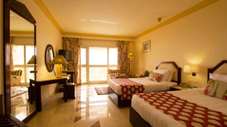 Winter Wanneer je tussen 01-11-2025 en 31-03-2026 in deze accommodatie verblijft, is onderstaande informatie van toepassing. * Ligging * Privéstrand * Zandstrand * Ligbedden met matrasjes gratis * Parasol gratis * Centrum van Hurghada op circa 10 kilometer * Dichtstbijzijnde restaurant op circa 500 meter * Dichtstbijzijnde bar op circa 500 meter * Shuttleservice naar het centrum (Hurghada) * Vooraf reserveren bij de receptie * Algemeen & faciliteiten * 1 gebouw * Maximaal 5 verdiepingen * 252 kamers * Receptie * 24 uur per dag * Lobby * 4 liften * Lift in elk gebouw * Bagageruimte * Wifi in één van de openbare ruimtes gratis * 5 winkels * Minimarkt * Wasservice tegen betaling * Doktersservice tegen betaling * Tuin * Privé parkeergelegenheid * Restaurants & bars * Buffetrestaurant * Gesloten vanwege werkzaamheden tussen ca. zondag 4 januari 2026 en woensdag 4 februari 2026 * 2 à-la-carterestaurants tegen bijbetaling * Roomservice tegen betaling * 5 drinkgelegenheden * 3 bars * Beachbar * Lobbybar * Poolbar * 2 rooftopbars * Activiteiten & ontspanning * Aerobics * Beachvolleybal * Biljart tegen betaling * Boccia * Darts * Duikcentrum tegen betaling * Fitness * Squash tegen betaling * Tafeltennis tegen betaling * Tennis materiaal tegen betaling * Voetbal tegen betaling * Yoga * Spafaciliteiten * Sauna tegen betaling * Hamam tegen betaling * Bubbelbad binnen tegen betaling * Massages tegen betaling * Schoonheidsbehandelingen tegen betaling * Animatie- * Shows- * Livemuziek- * Zwembaden * Buitenzwembad * Zoetwater * Verwarmd * Zonneterras * Ligbedden met matrasjes gratis * Parasol gratis * Badhanddoekenservice gratis * Kinderfaciliteiten * Midiclub (4-9 jaar) * Minidisco * Buitenspeeltuin * Babybedje gratis * Babysitservice tegen betaling * ter plaatse op aanvraag * Verzorging * All Inclusive * Ontbijt met keuzemenu (07.00-10.00 uur) * Lunch met keuze uit een vast menu (13.00-15.00 uur) * Dineren in enkele à-la-carterestaurants 1 keer per verblijf * Snacks (14.00-17.00 uur) * Selectie lokale (non-)alcoholische drankjes (10.00-23.00 uur) * Tegen betaling: dineren in het à-la-carterestaurant, alle consumpties in de bar, drankjes in flessen, import drankjes, verse vruchtensappen en roomserviceHotelkamers * 2-persoonskamer Voordeel DE * Speciaal tarief * Locatie kan afwijken ten opzichte van andere kamertypes * Faciliteiten kunnen afwijken ten opzichte van andere kamertypes * Airconditioning * Kluisje * Satelliettelevisie * Telefoon tegen betaling * Eet- en drinkfaciliteiten * Koffie- en theefaciliteiten * Minibar * Badkamer bad of douche, toilet en föhn * Wifi gratis * Balkon of terras (zitje) * 2-persoonskamer Standaard Zijzeezicht DZI * Oppervlakte van circa 36 m² * Zijzeezicht * Airconditioning * Kluisje * Televisie * Telefoon tegen betaling * Eet- en drinkfaciliteiten * Koffie- en theefaciliteiten * Minibar * Badkamer bad of douche, toilet en föhn * Wifi * Balkon of terras (zitje) * 2-persoonskamer Standaard Zeezicht DZM * Oppervlakte circa 36 m² * Zeezicht * Airconditioning * Kluisje gratis * Satelliettelevisie gratis * Telefoon tegen betaling * Eet- en drinkfaciliteiten * Koffie- en theefaciliteiten gratis * Minibar * Badkamer bad of douche, toilet en föhn * Wifi gratis * Balkon of terras (zitje) * 2-persoonskamer Deluxe Zeezicht DDM * Oppervlakte van circa 48 m² * Zeezicht * Airconditioning * Kluisje * Televisie * Telefoon tegen betaling * Eet- en drinkfaciliteiten * Koffie- en theefaciliteiten * Minibar * Badkamer bad of douche, toilet en föhn * Wifi * Balkon of terras (zitje) * Familiekamer Standaard FZ * Oppervlakte van circa 50 m² * Eén grote kamer * Airconditioning * Kluisje gratis * Satelliettelevisie gratis * Telefoon tegen betaling * Eet- en drinkfaciliteiten * Koffie- en theefaciliteiten gratis * Minibar * Badkamer bad of douche, toilet en föhn * Wifi gratis * Balkon of terras (zitje) * Familiekamer Suite FU
