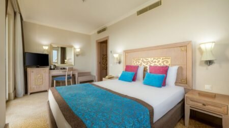 Zomer Wanneer je tussen 18-03-2026 en 15-11-2026 in deze accommodatie verblijft, is onderstaande informatie van toepassing. * Ligging * Gelegen aan het privéstrand (Bogazkent) * Ligbedden met matrasjes * Parasol * Dichtstbijzijnde winkel op circa 200 meter * Dichtstbijzijnde restaurant op circa 200 meter * Dichtstbijzijnde bar op circa 200 meter * Bogazkent op circa 200 meter * Belek op circa 7 kilometer * Bushalte op circa 200 meter * Algemeen & faciliteiten * 4 gebouwen * Maximaal 5 verdiepingen * 380 kamers * Receptie * 24 uur per dag * Inchecken vanaf 14.00 uur * Uitchecken tot 12.00 uur * Lobby * 4 liften * Lift in elk gebouw * Bagageruimte * Wifi in één van de openbare ruimtes * Meerdere winkels * Minimarkt * Wasservice tegen betaling * Doktersservice tegen betaling * Tuin * Openbare parkeergelegenheid * Privé parkeergelegenheid * Restaurants & bars * Buffetrestaurant * 4 à-la-carterestaurants * Italiaans restaurant (vooraf reserveren) * Mexicaans restaurant (vooraf reserveren) * Turks restaurant (vooraf reserveren) * Visrestaurant (vooraf reserveren) * Snackbar * Roomservice tegen betaling * 6 drinkgelegenheden * Bar * Beachbar * Bierbar * Discobar * Lobbybar * Poolbar * Activiteiten & ontspanning * Aerobics * Basketbal * Beachvolleybal * Biljart tegen betaling * Boccia * Bowling tegen betaling * Darts * Fitness * Midgetgolf * Tafeltennis * Tennis tegen betaling * Voetbal * Yoga * Spa Center * Binnenzwembad * Sauna * Hamam behandelingen tegen betaling * Bubbelbad binnen * Massages tegen betaling * Schoonheidsbehandelingen tegen betaling * Gameroom * Animatie * Shows * Livemuziek * Zwembaden * 2 buitenzwembaden * Eén van deze zwembaden heeft 3 glijbanen * De glijbanen hebben verschillende openingsperiodes * Buitenzwembad voor kinderen * 2 glijbanen * Binnenzwembad * Binnenzwembad voor kinderen * Zonneterras * Ligbedden met matrasjes * Parasol * Badhanddoekenservice gratis met borg * Kinderfaciliteiten * Mini club (4-12 jaar) * Teenage club (13-16 jaar) * Open in het zomerseizoen tussen ca. maandag 18 mei 2026 en dinsdag 18 augustus 2026 * Minidisco * Buitenspeeltuin * Babybedje * Verzorging * Ultra All Inclusive * Ontbijt in buffetvorm (07.00-11.00 uur) * Lunch in buffetvorm (12.30-14.30 uur) * Diner in buffetvorm (18.30-21.30 uur) * Dineren in 3 à-la-carterestaurants * Snacks (11.00-18.00 uur) * Koffie, thee & koekjes (11.00-23.00 uur) * IJs (11.00-18.00 uur) * Middernachtsnack (21.30-07.00 uur) * Selectie geïmporteerde alcoholische drankjes (24 uur per dag) * Selectie geïmporteerde niet-alcoholische drankjes (24 uur per dag) * Selectie lokale (non-)alcoholische drankjes (24 uur per dag) * Tegen betaling: dineren in één van de à-la-carterestaurants, import drankjes, champagne, cognac, whiskey, verse vruchtensappen en roomservice * Goed om te weten * Duurzaamheidslabel(s): GreenStep Sustainable Tourism StandardHotelkamers * DE * Speciaal tarief * Locatie, formaat, uitzicht en/of faciliteiten kunnen afwijken ten opzichte van andere kamertypes * DZ1 * Oppervlakte circa 27 m² * Landzicht * Eén slaapkamer met meerdere slaapplaatsen: stapelbed * Airconditioning * Kluisje * Satelliettelevisie * Telefoon tegen betaling * Eet- en drinkfaciliteiten * Koffie- en theefaciliteiten * Minibar * Badkamer douche, toilet, föhn en badslippers * Wifi * Balkon (zitje) * DZL * Oppervlakte circa 27 m² * Landzicht * Airconditioning * Kluisje * Satelliettelevisie * Telefoon tegen betaling * Eet- en drinkfaciliteiten * Koffie- en theefaciliteiten * Minibar * Badkamer douche, toilet, föhn en badslippers * Wifi * Balkon (zitje) * DZI * Oppervlakte circa 27 m² * Zijzeezicht * Airconditioning * Kluisje * Satelliettelevisie * Telefoon tegen betaling * Eet- en drinkfaciliteiten * Koffie- en theefaciliteiten * Minibar * Badkamer douche, toilet, föhn en badslippers * Wifi * Balkon (zitje) * F1L * F2L * F1I * F2I * FV * Oppervlakte circa 40 m² * Landzicht * Eén grote kamer met meerdere slaapplaatsen: stapelbed * Airconditioning * Kluisje * Satelliettelevisie * Telefoon tegen betaling * Eet- en drinkfaciliteiten * Koffie- en theefaciliteiten * Minibar * Badkamer douche, toilet, föhn en badslippers * Wifi * Balkon (zitje) * JZ