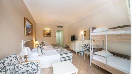 Zomer Wanneer je tussen 01-04-2026 en 15-11-2026 in deze accommodatie verblijft, is onderstaande informatie van toepassing. * Ligging * Gelegen aan het privéstrand * Zandstrand * Ligbedden * Parasol * Dichtstbijzijnde winkel op circa 4 kilometer * Dichtstbijzijnde restaurant op circa 4 kilometer * Dichtstbijzijnde bar op circa 4 kilometer * Kadriye op circa 4 kilometer * Shuttleservice naar het centrum (Kadriye) * Algemeen & faciliteiten * 3 gebouwen * Maximaal 6 verdiepingen * 521 kamers * Receptie * 24 uur per dag * Inchecken vanaf 14.00 uur * Uitchecken tot 12.00 uur * Laat uitchecken, ter plaatse aanvragen en op basis van beschikbaarheid tegen betaling * Lobby met zitgedeelte * 6 liften * Lift in elk gebouw * Bagageruimte * Doucheruimte bij aankomst en vertrek * Wifi in alle openbare ruimtes * Meerdere winkels * Minimarkt * Wasservice tegen betaling * Doktersservice tegen betaling * Tuin * Openbare parkeergelegenheid * Restaurants & bars * Buffetrestaurant * Meerdere à-la-carterestaurants * Barbecue restaurant * Italiaans restaurant * Mexicaans restaurant * Visrestaurant * Patisserie * Roomservice tegen betaling * 6 drinkgelegenheden * Beachbar * Bierbar * Ierse pub * Lobbybar * Poolbar * Terrace bar * Activiteiten & ontspanning * Aerobics * Basketbal * Beachvolleybal * Biljart tegen betaling * Boccia * Darts * Fitness * Midgetgolf * Tafeltennis * Tafelvoetbal tegen betaling * Tennis tegen betaling * Volleybal * Yoga * Spafaciliteiten * Sauna * Hamam * Bubbelbad binnen * Massages tegen betaling * Gameroom * Animatie voor volwassenen * 7 keer per week * Animatie voor kinderen * 7 keer per week * Shows * Livemuziek * Zwembaden * 4 buitenzwembaden * Eén van deze zwembaden heeft 4 glijbanen * Buitenzwembad voor kinderen * Binnenzwembad * Zonneterras * Ligbedden * Parasol * Badhanddoekenservice * Kinderfaciliteiten * Mini club (4-12 jaar) * Open in het zomerseizoen * 7 keer per week * Minidisco * Buitenspeeltuin * Babysitservice tegen betaling * Verzorging * Ultra All Inclusive * Ontbijt in buffetvorm (07.00-10.00 uur) * Laat ontbijt in buffetvorm (10.00-11.00 uur) * Lunch in buffetvorm (12.30-14.30 uur) * Diner in buffetvorm (18.30-21.30 uur) * Dineren in één van de à-la-carterestaurants 1 keer per verblijf bij een verblijf van minimaal 4 nachten * Snacks (12.00-18.00 uur) * Koffie, thee & koekjes (11.00-22.00 uur) * IJs (11.00-18.00 uur) * Middernachtsnack (21.30-07.00 uur) * Selectie lokale (non-)alcoholische drankjes (24 uur per dag) * Tegen betaling: dineren in één van de à-la-carterestaurants, import drankjes en roomserviceHotelkamers * 2-persoonskamer Voordeel DE * Locatie, formaat, uitzicht en/of faciliteiten kunnen afwijken ten opzichte van andere kamertypes * Oppervlakte circa 23 m² * Landzicht * Airconditioning * Kluisje * Televisie * Telefoon tegen betaling * Eet- en drinkfaciliteiten * Koffie- en theefaciliteiten * Koelkast gratis * Minibar * Badkamer douche, toilet, föhn, badjassen en badslippers * Wifi * Geen balkon * 2-persoonskamer Standaard DZ4 * Oppervlakte tussen 24 en 26 m² * Landzicht * Eén slaapkamer * Airconditioning * Kluisje * Televisie * Telefoon tegen betaling * Eet- en drinkfaciliteiten * Koffie- en theefaciliteiten * Minibar * Badkamer douche, toilet, föhn, badjassen en badslippers * Wifi * Geen balkon * 2-persoonskamer Standaard Stapelbed DZ2 * Oppervlakte circa 28 m² * Landzicht * Eén slaapkamer * Stapelbed * Airconditioning * Kluisje * Televisie * Telefoon tegen betaling * Eet- en drinkfaciliteiten * Koffie- en theefaciliteiten * Minibar * Badkamer douche, toilet, föhn, badjassen en badslippers * Wifi * Balkon of terras (zitje) * 2-persoonskamer Standaard Stapelbed DZ3 * Oppervlakte circa 28 m² * Landzicht * Eén slaapkamer * Stapelbed * Airconditioning * Kluisje * Televisie * Telefoon tegen betaling * Eet- en drinkfaciliteiten * Koffie- en theefaciliteiten * Minibar * Badkamer douche, toilet, föhn, badjassen en badslippers * Wifi * Balkon of terras (zitje) * 2-persoonskamer Standaard Stapelbed DZ1 * Oppervlakte circa 28 m² * Landzicht * Eén slaapkamer * Stapelbed * Airconditioning * Kluisje * Televisie * Telefoon tegen betaling * Eet- en drinkfaciliteiten * Koffie- en theefaciliteiten * Minibar * Badkamer douche, toilet, föhn, badjassen en badslippers * Wifi * Balkon of terras (zitje) * 2-persoonskamer Standaard Landzicht DZL * Oppervlakte circa 23 m² * Landzicht * Airconditioning * Kluisje * Televisie * Telefoon tegen betaling * Eet- en drinkfaciliteiten * Koffie- en theefaciliteiten * Minibar * Badkamer douche, toilet, föhn, badjassen en badslippers * Wifi * Balkon of terras (zitje) * 2-persoonskamer Standaard Zijzeezicht DZI * Oppervlakte circa 23 m² * Zijzeezicht * Airconditioning * Kluisje * Televisie * Telefoon tegen betaling * Eet- en drinkfaciliteiten * Koffie- en theefaciliteiten * Minibar * Badkamer douche, toilet, föhn, badjassen en badslippers * Wifi * Balkon of terras (zitje) * 2-persoonskamer Standaard Zeezicht DZM * Oppervlakte circa 23 m² * Zeezicht * Airconditioning * Kluisje * Televisie * Telefoon tegen betaling * Eet- en drinkfaciliteiten * Koffie- en theefaciliteiten * Minibar * Badkamer douche, toilet, föhn, badjassen en badslippers * Wifi * Balkon of terras (zitje) * Familiekamer Standaard FZ1 * Oppervlakte circa 31 m² * Landzicht * Woon-/slaapkamer * Eén slaapkamer * Airconditioning * Kluisje * Televisie * Telefoon tegen betaling * Eet- en drinkfaciliteiten * Koffie- en theefaciliteiten * Minibar * Badkamer douche, toilet, föhn, badjassen en badslippers * Wifi * Balkon of terras (zitje) * Familiekamer Standaard FZ2 * Oppervlakte circa 31 m² * Landzicht * Woon-/slaapkamer * Eén slaapkamer * Airconditioning * Kluisje * Televisie * Telefoon tegen betaling * Eet- en drinkfaciliteiten * Koffie- en theefaciliteiten * Minibar * Badkamer douche, toilet, föhn, badjassen en badslippers * Wifi * Balkon of terras (zitje) * Familiekamer Standaard FZ * Oppervlakte circa 31 m² * Landzicht * Woon-/slaapkamer * Eé