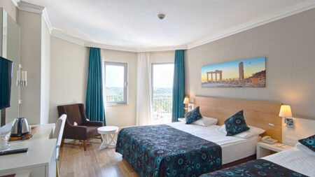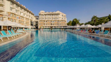 Direct naar: * Ligging Diamond Beach in Colakli () * Faciliteiten Diamond Beach () * Restaurants & bars () * Zwembaden () * Hotelkamers () * Activiteiten & ontspanning () * Kinderfaciliteiten () * Verzorging () Ligging Diamond Beach in Colakli * Historische centrum van Side op ca. 13 km afstand * Dichtstbijzijnde winkels en bars op ca. 20 m * Centrum gemakkelijk te bereiken per bus of taxi * Op ca. 250 m van het privéstrand * Accommodatie en strand gescheiden door een weg * Bushalte op ca. 50 m van het hotel Faciliteiten Diamond Beach * 4 gebouwen * Maximaal 6 verdiepingen * 288 kamers * 4 liften, in elk gebouw een lift aanwezig * Lobby met zitjes * 24-uursreceptie * Bagageruimte * Tuin * Wifi * Diverse winkeltjes* * Minimarkt* * Wasservice* * Doktersservice* * Kapsalon* * Discotheek * Roomservice* * Wifi in de (meeste) openbare ruimtes * Openbare parkeergelegenheid *tegen betaling Restaurants & bars * Buffetrestaurant met Turkse en Internationale gerechten * 2 à-la-carterestaurants (vooraf reserveren) * Minibuffet met snacks * Diverse bars, waaronder een lobbybar Zwembaden * 3 zwembaden * Binnenzwembad in het Spa Center * 2 watergelijbanen (op vaste tijden geopend van 01-05 t/m 31-10) * Zonneterras * Ligbedden, matrasjes en parasols * Ligbedden, matrasjes en parasols op het strand * Badhanddoekenservice tegen betaling (1x per dag gratis) Hotelkamers * Standaardkamer (1-3 personen) * Verzorgd ingericht * Ca. 28-32 m² * Centrale airconditioning * Telefoon * Satelliettelevisie * Wifi * Minibar (gevuld met water) * Koffie- en theezetfaciliteiten * Kluisje * Bad/douche * Toilet * Föhn * Badjas* * Slippers * Balkon met zitje * Landzicht * Tegen een meerprijs boekbaar met zwembadzicht * Tegen betaling * Ruime standaardkamers (4 personen) * Qua faciliteiten gelijk aan de Standaardkamer * Ruimer * Familiekamer (3-4 personen) * Ca. 40 m² * Bestaat uit twee ruimtes * Qua faciliteiten gelijk aan de Standaardkamer Activiteiten & ontspanning * Beachvolleybal * Tafeltennis * Tafelvoetbal* * Aerobics * Yoga * Boccia * Fitness * Darts * Biljart* * Watersporten* * Gameroom* * Spa Center met binnenzwembad, Turks bad en sauna * Massages en behandelingen* * Bubbelbad* * Afwisselend animatieprogramma (6 dagen per week) met o.a. shows in de avond Kinderfaciliteiten * 1 buitenzwembed voor kinderen * 1 binnenzwembad voor kinderen * Miniclub (4-12 jaar, 6 dagen per week) * Minidisco * Speeltuintje * Babybedjes (op aanvraag) Verzorging zomer: Diamond Beach * Ultra All Inclusive: * Ontbijt in buffetvorm (07.00-10.00 uur) * Laat ontbijt in buffetvorm (10.00-11.00 uur) * Lunch in buffetvorm (12.30-14.30 uur) * Diner in buffetvorm (19.00-21.00 uur) * Laat diner in buffetvorm (21.00-23.00 uur) * Snacks mini-buffet bij het strand (12.30-15.00 uur) * Koffie/thee en koekjes (15.30-16.30 uur) * IJsjes gedurende de dag * Middernachtsnack (23.00-07.00 uur) * Maaltijden in geselecteerde restaurants en bars (24/7) * Lokale (non-)alcoholische dranken in geselecteerde bars (24/7) * Import dranken (24/7) * Eenmalig gratis dineren in één van de twee à-la-carterestaurants (vooraf reserveren) * Tegen betaling: overige import dranken, roomservice