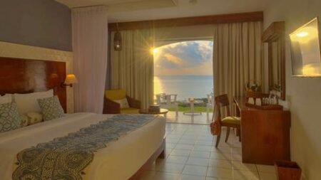 Een vakantie bij dit hotel is er niet zo maar een. Hier wordt namelijk alles uit de kast gehaald om je volledig in de watten te leggen Start je dag met een smakelijk ontbijt in het sfeervolle restaurant. Wat een fijne manier om wakker te worden! Daarna is het natuurlijk tijd voor een verfrissende duik in één van de vier zwembaden. Zwem tijdens het baantjes trekken even naar de swim up ar voor een lekkere cocktail, je verblijft toch op basis van All Inclusive! ’s Avonds dineer je met een romantische zonsondergang.