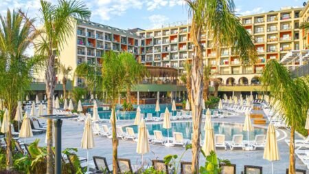 Zomer Wanneer je tussen 27-03-2026 en 21-11-2026 in deze accommodatie verblijft, is onderstaande informatie van toepassing. * Ligging * Privéstrand op circa 1,7 kilometer * Ligbedden * Parasol * Centrum van Kumkoy op circa 100 meter * Dichtstbijzijnde winkel op circa 100 meter * Dichtstbijzijnde restaurant op circa 100 meter * Dichtstbijzijnde bar op circa 100 meter * Side op circa 6 kilometer * Shuttleservice naar het strand * Bushalte op circa 100 meter * Algemeen & faciliteiten * 1 gebouw * Maximaal 6 verdiepingen * 372 kamers * Receptie * 24 uur per dag * Lobby * Lift * Bagageruimte * Wifi in alle openbare ruimtes * Winkel * Wasservice tegen betaling * Doktersservice tegen betaling * Tuin * Openbare parkeergelegenheid * Privé parkeergelegenheid * Restaurants & bars * Buffetrestaurant * 3 à-la-carterestaurants (vooraf reserveren) * Italiaans restaurant * Turks restaurant * Visrestaurant * Patisserie * Roomservice tegen betaling * 4 drinkgelegenheden * Bar * Beachbar * Lobbybar * Poolbar * Activiteiten & ontspanning * Aerobics * Beachvolleybal * Boccia * Boogschieten * Darts * Duikcentrum tegen betaling * Fitness * Tafeltennis * Watersporten tegen betaling * Spa Center * Sauna * Hamam * Massages tegen betaling * Schoonheidsbehandelingen tegen betaling * Animatie voor volwassenen * 6 keer per week * Shows * 6 keer per week * Livemuziek * Eén keer per week * Zwembaden * 3 buitenzwembaden * Activiteitenbad * Adult pool * Buitenzwembad voor kinderen * 10 glijbanen * Aquapark Lengte: 120, cm * Open tussen ca. woensdag 1 april 2026 en donderdag 1 oktober 2026 afhankelijk van weersomstandigheden * Binnenzwembad * Gesloten in het zomerseizoen * 10 glijbanen * Zonneterras * Ligbedden * Parasol * Badhanddoekenservice * Kinderfaciliteiten * Mini club (4-12 jaar) * 6 keer per week * Minidisco * 6 keer per week * Buitenspeeltuin * Babybedje als preferentie toe te voegen in het boekingsformulier * Verzorging * All Inclusive * Ontbijt in buffetvorm (07.00-10.00 uur) * Laat ontbijt in buffetvorm (10.00-10.30 uur) * Lunch in buffetvorm (12.30-14.00 uur) * Diner in buffetvorm (19.00-21.00 uur) * Dineren in één van de à-la-carterestaurants 1 keer per verblijf * Snacks (12.00-16.00 uur) * Koffie, thee & koekjes (15.00-16.00 uur) * IJs (15.00-16.00 uur) * Middernachtsnack (23.00-23.30 uur) * Selectie lokale (non-)alcoholische drankjes (10.00-00.00 uur) * Tegen betaling: drankjes na 00.00 uur, import drankjes, speciale wijnen, verse vruchtensappen en roomserviceHotelkamers * 2-persoonskamer Standaard DZ * Oppervlakte tussen 22 en 24 m² * Airconditioning * Kluisje tegen betaling * Televisie * Telefoon tegen betaling * Eet- en drinkfaciliteiten * Koffie- en theefaciliteiten * Minibar * Badkamer douche, toilet en föhn * Wifi * Balkon of terras (zitje) * 2-persoonskamer Standaard DZ2 * Familiekamer Standaard FZ * Oppervlakte tussen 40 en 42 m² * 2 slaapkamers * Airconditioning * Kluisje tegen betaling * Televisie * Telefoon tegen betaling * Eet- en drinkfaciliteiten * Koffie- en theefaciliteiten * Minibar * Badkamer douche, toilet en föhn * Wifi * Balkon of terras (zitje) * Familiekamer Duplex FF * Oppervlakte tussen 40 en 42 m² * In duplexstijl * 2 slaapkamers * Eén slaapkamer * Eén slaapkamer * Airconditioning * Kluisje tegen betaling * Televisie * Telefoon tegen betaling * Eet- en drinkfaciliteiten * Koffie- en theefaciliteiten * Minibar * Badkamer douche, toilet en föhn * Wifi * Balkon of terras (zitje)