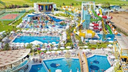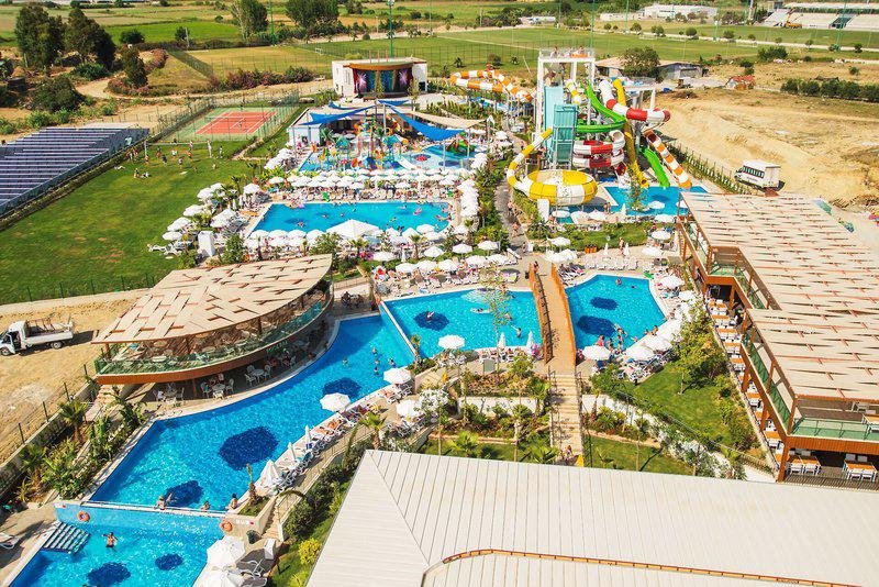 Zin in een flinke dosis zon, zee en waterpret? Dan is het luxe Dream World Aqua in de levendige badplaats Kumkoy wat voor jou! Dit 5-sterrenhotel staat garant voor een topvakantie in Turkije. Bij het all inclusive hotel hoort een aquapark met 10 glijbanen, 6 zwembaden en een kinderbad. Daarnaast zijn er tal van sportmogelijkheden en is er een showpodium. Wie lekker wil zonnebaden kan neerstrijken op het zonneterras of op de ligbedden op het strand. Ook aan de kleinste gasten is gedacht: er is onder meer een miniclub, een waterspeelpark, een speeltuin en een kinderbuffet. En ook je smaakpapillen genieten volop van je all inclusive vakantie; het eten en drinken is de hele dag tot in de puntjes geregeld! Wil jij genieten van een vakantie met het hele gezin aan de Turkse Riviera? Boek dan snel je verblijf bij Dream World Aqua!