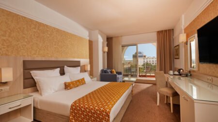 Zomer Wanneer je tussen 01-05-2025 en 30-09-2025 in deze accommodatie verblijft, is onderstaande informatie van toepassing. * Ligging * Openbaar strand op circa 100 meter * Dichtstbijzijnde winkel op circa 500 meter * Dichtstbijzijnde restaurant op circa 500 meter * Dichtstbijzijnde bar op circa 500 meter * Nessebar op circa 8 kilometer * Sunny Beach op circa 3 kilometer * Bushalte op circa 400 meter * Algemeen & faciliteiten * 1 gebouw * Maximaal 10 verdiepingen * 597 kamers * Receptie * 24 uur per dag * Lobby * 6 liften * Bagageruimte * Wifi in alle openbare ruimtes * Winkel * Wasservice tegen betaling * Doktersservice tegen betaling * Tuin * Privé parkeergelegenheid tegen betaling * Restaurants & bars * 2 buffetrestaurants * 3 à-la-carterestaurants * Vooraf reserveren * Roomservice tegen betaling * 6 drinkgelegenheden * 6 bars * Activiteiten & ontspanning * Aerobics * Basketbal * Beachvolleybal * Biljart * Boccia * Darts * Tafeltennis * Tennis * Voetbal * Volleybal * Watersporten * Yoga * Spa Center * Binnenzwembad tegen betaling * Sauna tegen betaling * Turks stoombad tegen betaling * Bubbelbad binnen tegen betaling * Massages tegen betaling * Schoonheidsbehandelingen tegen betaling * Kapsalon tegen betaling * Fitnessruimte * Animatie * Shows * Livemuziek * Zwembaden * 3 buitenzwembaden * Activiteitenbad * Infinity pool * Buitenbad voor peuters * Splashpool voor kinderen * 3 glijbanen * Zonneterras * Ligbedden gratis * Parasol gratis * Badhanddoekenservice gratis * Kinderfaciliteiten * Mini club (4-12 jaar) * Teenage club (13-17 jaar) * Minidisco * Buitenspeeltuin * Babybedje op aanvraag via ons contact center * Verzorging * Ultra All Inclusive * Ontbijt in buffetvorm (08.00-11.00 uur) * Lunch in buffetvorm (12.00-14.30 uur) * Diner in buffetvorm of à la carte (18.30-21.30 uur) * Snacks (11.00-17.00 uur) * Selectie lokale (non-)alcoholische drankjes (24 uur per dag) * Niet inbegrepen: * Geïmporteerde drankjesHotelkamers * 2-persoonskamer Standaard Landzicht DZL * Oppervlakte circa 28 m² * Landzicht * Airconditioning * Kluisje * Televisie * Telefoon tegen betaling * Eet- en drinkfaciliteiten * Waterkoker * Minibar * Badkamer met douche, toilet, föhn, badjassen en badslippers * Wifi * Balkon of terras (zitje) * 2-persoonskamer Deluxe (Frontal Sea View) DD1 * Oppervlakte circa 31 m² * Zeezicht * Zeezijde * Airconditioning * Kluisje * Televisie * Telefoon tegen betaling * Eet- en drinkfaciliteiten * Waterkoker * Minibar * Badkamer met douche, toilet, föhn, badjassen en badslippers * Wifi * Balkon of terras (zitje) * 2-persoonskamer Deluxe Landzicht DDL * Oppervlakte circa 31 m² * Landzicht * Airconditioning * Kluisje * Televisie * Telefoon tegen betaling * Eet- en drinkfaciliteiten * Waterkoker * Minibar * Badkamer met douche, toilet, föhn, badjassen en badslippers * Wifi * Balkon of terras (zitje) * 2-persoonskamer Deluxe Zeezicht DDM * Oppervlakte circa 31 m² * Zeezicht * Airconditioning * Kluisje * Televisie * Telefoon tegen betaling * Eet- en drinkfaciliteiten * Waterkoker * Minibar * Badkamer met douche, toilet, föhn, badjassen en badslippers * Wifi * Balkon of terras (zitje) * Familiekamer Standaard Landzicht FZL * Oppervlakte circa 61 m² * Landzicht * Woon-/slaapkamer * Eén slaapkamer * Airconditioning * Kluisje * Televisie * Telefoon tegen betaling * Eet- en drinkfaciliteiten * Waterkoker * Minibar * Badkamer met douche, toilet, föhn, badjassen en badslippers * Wifi * Balkon of terras (zitje) * Familiekamer Standaard Zeezicht FZM * Oppervlakte circa 61 m² * Zeezicht * Woon-/slaapkamer * Eén slaapkamer * Airconditioning * Kluisje * Televisie * Telefoon tegen betaling * Eet- en drinkfaciliteiten * Waterkoker * Minibar * Badkamer met douche, toilet, föhn, badjassen en badslippers * Wifi * Balkon of terras (zitje)