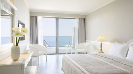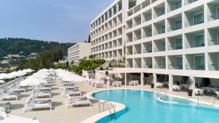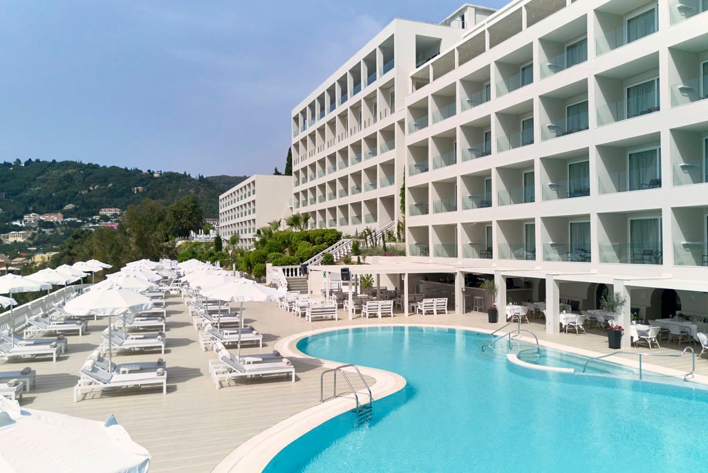 Zomer Wanneer je tussen 01-05-2026 en 31-10-2026 in deze accommodatie verblijft, is onderstaande informatie van toepassing. * Ligging * Gelegen op een heuvel * Openbaar strand op circa 200 meter * Bereikbaar via traptreden * Ligbedden * Parasol * Centrum van Agios Gordios op circa 600 meter * Dichtstbijzijnde winkel op circa 600 meter * Dichtstbijzijnde restaurant op circa 200 meter * Dichtstbijzijnde bar op circa 200 meter * Kaiser's Throne op circa 11 kilometer * Achillion Palace op circa 13 kilometer * Corfu Town op circa 15 kilometer * Bushalte op circa 600 meter * Algemeen & faciliteiten * Adults Only (minimumleeftijd 16 jaar) * 9 gebouwen * Maximaal 5 verdiepingen * 349 kamers * Receptie * 24 uur per dag * 7 liften * Niet in elk gebouw een lift * Bagageruimte * Wifi in alle openbare ruimtes * 3 winkels * Minimarkt * Wasservice tegen betaling * Doktersservice tegen betaling * Tuin * Openbare parkeergelegenheid * Privé parkeergelegenheid * Restaurants & bars * Buffetrestaurant * 2 à-la-carterestaurants (vooraf reserveren) * Grieks restaurant * Italiaans restaurant * Snackrestaurant * Roomservice tegen betaling * 6 drinkgelegenheden * Bar * Beachbar * Lobbybar * 2 poolbars * Rooftopbar * Activiteiten & ontspanning * Fitness * Watersporten tegen betaling * Yoga * Spa Center * Binnenzwembad tegen betaling * Sauna tegen betaling * Stoombad tegen betaling * Massages tegen betaling * Schoonheidsbehandelingen tegen betaling * Animatie voor volwassenen * Shows * Livemuziek * Zwembaden * 2 buitenzwembaden * Zonneterras * Ligbedden met matrasjes * Parasol * Badhanddoekenservice * Verzorging * All Inclusive * Ontbijt in buffetvorm (07.00-10.00 uur) * Lunch in buffetvorm (12.30-14.30 uur) * Diner in buffetvorm (18.30-21.30 uur) * Dineren in alle à-la-carterestaurants 1 keer per verblijf * Snacks * Koffie, thee & koekjes * IJs * Selectie lokale (non-)alcoholische drankjes (10.00-00.00 uur) * Tegen betaling: import drankjes en roomservice * Goed om te weten * Duurzaamheidslabel(s): Green KeyHotelkamers * 2-persoonskamer Deluxe Zeezicht DDM * Oppervlakte tussen 22 en 26 m² * Zeezicht * Airconditioning * Kluisje * Televisie * Telefoon tegen betaling * Eet- en drinkfaciliteiten * Koffie- en theefaciliteiten * Minibar * Dagelijks aangevuld met frisdrank * Badkamer inloopdouche, toilet, föhn, badjassen en badslippers * Wifi * Balkon of terras (zitje) * Junior suite Standaard Zeezicht JZM * Oppervlakte tussen 28 en 30 m² * Zeezicht * Airconditioning * Kluisje * Televisie * Telefoon tegen betaling * Eet- en drinkfaciliteiten * Koffie- en theefaciliteiten * Minibar * Gevuld met frisdrank * Badkamer douche, toilet, föhn, badjassen en badslippers * Wifi * Balkon of terras (zitje)