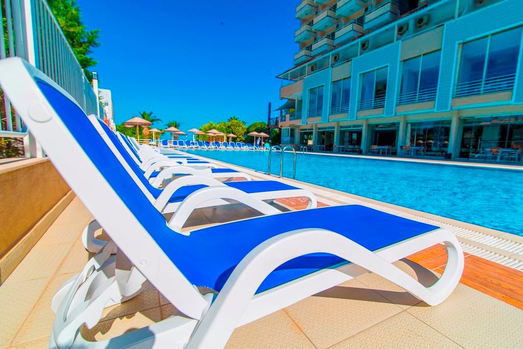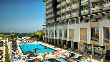 Direct naar: * Ligging () * Faciliteiten () * Restaurants & Bars () * Hotelkamers () * Sport & Ontspanning () * Kinderfaciliteiten () * Zwembaden & Strand () * Verzorging () Ligging: Ephesia Hotel * Direct aan het Long Beach strand * Centrum van Kusadasi op ca. 6 kilometer * Bushalte op ca. 50 meter * Winkels en restaurants op ca. 500 meter Faciliteiten * 1 gebouw met 6 verdiepingen * 3 liften * 263 kamers * 24-uursreceptie * Bagageruimte * Lobby * Tuin * Wifi * Kapsalon* * Winkeltje en minimarkt* * Doktersservice* * Privé parkeerterrein *Tegen betaling Restaurants & bars * 2 buffetrestaurants * 1 à-la-carterestaurant (vooraf reserveren en geopend van 01-06 t/m 15-09) * 3 bars Hotelkamers * Standaardkamer landzicht (1-4 personen, max. 2 volw. + 2 kind.) * Ca. 25 m² * Telefoon* * Airconditioning * Satelliettelevisie * Minibar (gevuld met water, overige tegen betaling) * Kluisje * Wifi * Bad/douche * Toilet * Föhn * Balkon met zitje * Tegen een meerprijs kun je zeezicht boeken *Tegen betaling De voordeelkamer (max. 2 volw. + 2 kind.) kan qua faciliteiten en ligging afwijken van de standaardkamer * Familiekamer stapelbed (2-4 personen) * Ca. 35 m² * Bestaat uit 2 slaapkamers, waarvan 1 slaapkamer met een stapelbed * Dezelfde faciliteiten als de standaardkamer * Familiekamer zeezicht (2-4 personen) * Ca. 45 m² * Bestaat uit 2 ruimtes * Dezelfde faciliteiten als de standaardkamer Sport & Ontspanning * Fitness * Aerobics * Boccia * Darts * Biljart* * Watersporten aan het strand* * Turks bad * Sauna * Binnenzwembad * Massages en behandelingen* * Dagelijks entertainment *Tegen betaling Kinderfaciliteiten * 1 kinderzwembad * Miniclub (4-12 jaar) * Minidisco * Speeltuintje * Babybedjes (op aanvraag) Zwembaden & Strand * 1 buitenzwembad * 1 binnenzwembad * Zonneterras * Privéstrand * Ligbedden, matrasjes en parasols gratis (zwembad en strand) * Gratis badhanddoekenservice Verzorging Zomer: Hotel Ephesia * Verblijf o.b.v. All Inclusive: * Ontbijt in buffetvorm (07.00-10.00 uur) * Laat ontbijt in buffetvorm (10.00-10.30 uur) * Lunch in buffetvorm (12.30-14.00 uur) * Diner in buffetvorm (19.00-21.30 uur) * Snacks (12.30-17.00 uur) * IJs (14.30-17.00 uur) * Koffie/thee en koekjes (16.00-18.00 uur) * Bij een verblijf van 7 dagen kun je 1 maal dineren in het à-la-carterestaurant (vooraf reserveren) * Geselecteerde lokale alcoholische en alcoholvrije drankjes van 10.00 tot 00.00 uur * Tegen betaling: alle consumpties na 00.00 uur, import drankjes, roomservice en verse vruchtensappen
