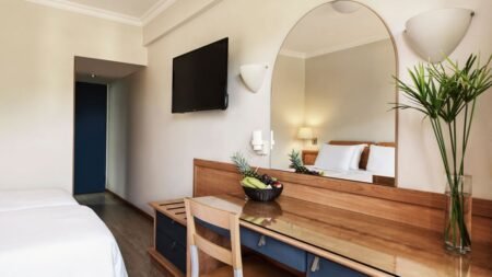 Zomer Wanneer je tussen 18-04-2026 en 31-10-2026 in deze accommodatie verblijft, is onderstaande informatie van toepassing. * Ligging * Gelegen aan het openbare strand * Centrum van Faliraki op circa 2,5 kilometer * Dichtstbijzijnde winkel op circa 300 meter * Dichtstbijzijnde restaurant op circa 300 meter * Dichtstbijzijnde bar op circa 300 meter * Bushalte op circa 50 meter * Algemeen & faciliteiten * 3 gebouwen * 573 kamers * Receptie * 24 uur per dag * 8 liften * Lounge * Wifi in diverse openbare ruimtes * Winkel (minimarkt) * Wasservice tegen betaling * Doktersservice tegen betaling * Openbare parkeergelegenheid * Restaurants & bars * 2 buffetrestaurants . Dresscode voor dames en heren tijdens alle maaltijden: casual kleding * 5 drinkgelegenheden * Activiteiten & ontspanning * Aerobics * Beachvolleybal * Biljart tegen betaling * Boccia * Darts * Kanoën * Midgetgolf * Tafeltennis * Tennis materiaal tegen betaling * Waterfietsen * Watersporten tegen betaling * Yoga * Spa Center * Beschikbaar bij Esperos Palace * Massages tegen betaling * Schoonheidsbehandelingen tegen betaling * Fitnessruimte tegen betaling * Gameroom toegang tegen betaling * Animatie * 6 keer per week * Zwembaden * 3 buitenzwembaden * Apart kindergedeelte in het buitenzwembad * Glijbaan * Zonneterras * Ligbedden * Parasol * Badhanddoekenservice * Kinderfaciliteiten * Mini club (4-14 jaar) * Minidisco * Buitenspeeltuin * Babysitservice tegen betaling * ter plaatse te reserveren * Verzorging * All Inclusive * Ontbijt in buffetvorm (07.00-10.00 uur) * Laat ontbijt in buffetvorm (10.00-11.00 uur) * Lunch in buffetvorm (12.00-14.30 uur) * Diner in buffetvorm (18.00-21.15 uur) * Snacks (10.00-18.00 uur) * Koffie, thee & koekjes (16.00-18.00 uur) * IJs (10.00-21.00 uur) * Middernachtsnack (21.30-00.00 uur) * Selectie lokale (non-)alcoholische drankjes (10.00-01.00 uur)Hotelkamers * 2-persoonskamer Standaard Landzicht DZL * In het hoofdgebouw * Landzicht * Airconditioning gratis tussen ca. maandag 1 juni 2026 en dinsdag 30 september 2025 * Kluisje * Satelliettelevisie * Telefoon * Eet- en drinkfaciliteiten * Minibar * Bij aankomst gevuld met water, frisdrank en alcoholische dranken * Badkamer bad of douche en toilet * Wifi * Balkon (zitje) * 2-persoonskamer Standaard Zeezicht DZM * In het hoofdgebouw * Zeezicht * Airconditioning gratis tussen ca. maandag 1 juni 2026 en dinsdag 30 september 2025 * Kluisje * Satelliettelevisie * Telefoon * Eet- en drinkfaciliteiten * Minibar * Bij aankomst gevuld met water, frisdrank en alcoholische dranken * Badkamer bad of douche en toilet * Wifi * Balkon (zitje) * Familiekamer Standaard Zijzeezicht FZI * In het hoofdgebouw * Zijzeezicht * Eén grote kamer met tussendeur * Airconditioning gratis tussen ca. maandag 1 juni 2026 en woensdag 30 september 2026 * Kluisje * Satelliettelevisie * Telefoon * Eet- en drinkfaciliteiten * Minibar * Bij aankomst gevuld met water, frisdrank en alcoholische dranken * Badkamer bad of douche en föhn * Wifi * Balkon (zitje) * Familiekamer Premium Zeezicht FRM