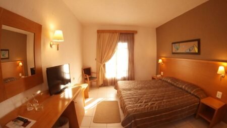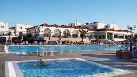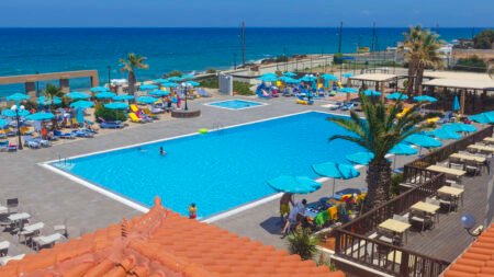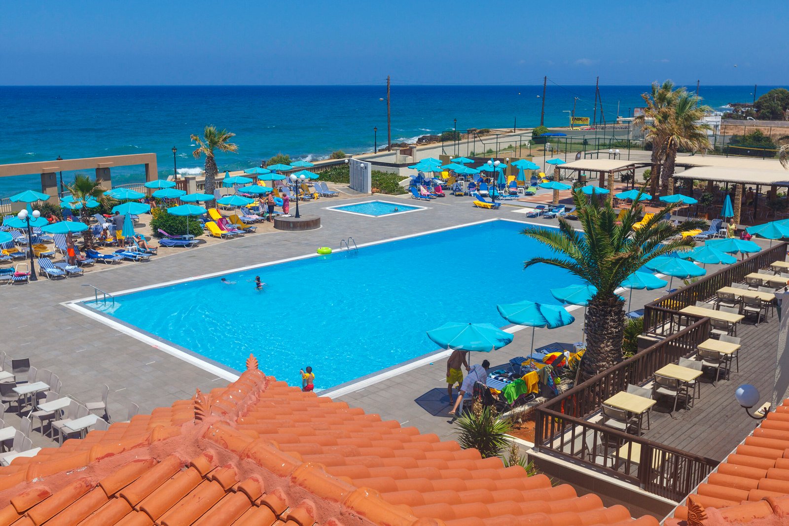 Zomer Wanneer je tussen 01-06-2025 en 31-10-2025 in deze accommodatie verblijft, is onderstaande informatie van toepassing. * Ligging * Aan het openbare strand * Zandstrand * Kiezelstrand * Openbaar strand * Weg tussen het strand en de accommodatie * Centrum van Chersonissos op circa 6 kilometer * Dichtstbijzijnde winkel op circa 1 kilometer * Dichtstbijzijnde restaurant op circa 1 kilometer * Dichtstbijzijnde bar op circa 1 kilometer * Bushalte op circa 5 meter * Algemeen & faciliteiten * 16 gebouwen * Maximaal 2 verdiepingen * 226 kamers * Receptie * 24 uur per dag * Lobby * Lift * Bagageruimte * Wifi in alle openbare ruimtes * Internetruimte * Winkel (minimarkt) * Wasservice tegen betaling * Doktersservice tegen betaling * Tuin * Openbare parkeergelegenheid * Restaurants & bars * Buffetrestaurant * À-la-carterestaurant * Italiaans restaurant * Snackbar * 2 drinkgelegenheden * Bar * Poolbar * Activiteiten & ontspanning * Aerobics * Basketbal * Biljart tegen betaling * Boccia * Darts * Fitness * Minivoetbal * Tafeltennis * Tennis tegen betaling * Voetbal * Volleybal * Yoga * Spafaciliteiten * Sauna tegen betaling * Massages tegen betaling * Schoonheidsbehandelingen tegen betaling * Animatie voor volwassenen- * Shows- * Livemuziek * Eén keer per week * Zwembaden * 2 buitenzwembaden * Eén van deze zwembaden is een zoetwaterbad * Eén van deze zwembaden is een zoutwaterbad * 2 van deze zwembaden hebben een glijbaan * 2 buitenzwembaden voor kinderen * Eén van deze zwembaden is een zoetwaterbad * Eén van deze zwembaden is een zoutwaterbad * 2 van deze zwembaden hebben een glijbaan * Zonneterras * Ligbedden * Parasol * Badhanddoekenservice gratis met borg * Kinderfaciliteiten * Mini club (4-12 jaar)- * Minidisco * Buitenspeeltuin * Babybedje op aanvraag via ons contact centerHotelkamers * 2-persoonskamer Comfort DJ * 2-persoonskamer Comfort DJ1