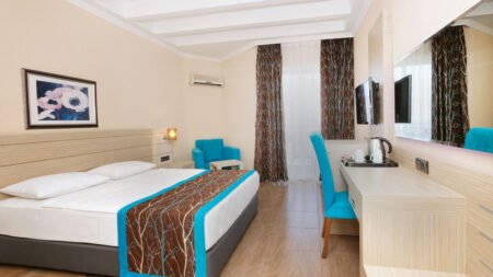 Direct naar: * Ligging () * Faciliteiten () * Restaurants & bars () * Zwembaden () * Hotelkamers () * Activiteiten & ontspanning () * Kinderfaciliteiten () * Verzorging () Ligging Kaila Beach Hotel * Op ca. 50 meter van het privéstrand * Op ca. 3 kilometer van het centrum van Alanya * Restaurants en bars op ca. 50 meter * Winkels op ca. 100 meter * Bushalte op ca. 50 meter Faciliteiten * 3 gebouwen (blok A nieuwste, blok B en blok C) met maximaal 6 verdiepingen * In elk gebouw is een lift aanwezig * 363 kamers * 24-uursreceptie * Lobby * Bagageruimte * Wifi * Roomservice* * Winkeltje en minimarkt* * Wasservice* * Doktersservice* * Kapsalon* * Openbare en privé parkeergelegenheid *Tegen betaling Restaurants & bars * 1 buffetrestaurant * 1 à-la-carterestaurant (vooraf reserveren) * 1 snackrestaurant * 6 bars Zwembaden * 2 buitenzwembaden * 1 buitenzwembad met 3 glijbanen (geopend van 10.00-12.00 en 14.00-16.00 uur) * 1 binnenzwembad (verwarmd) * Zonneterras * Privéstrand * Ligbedden en parasols gratis (zwembad en strand) * Badhanddoekenservice (met borg) Hotelkamers * Standaardkamer (1-4 personen) * Gelegen in blok B of C * Ca. 28-32 m² * Telefoon* * Airconditioning * Televisie * Minibar (gevuld met water) * Kluisje* * Koffie-/theezetfaciliteiten * Wifi * Douche * Toilet * Föhn * Balkon of terras met zitje * Tegen een meerprijs boekbaar met zijzeezicht *Tegen betaling * Kindvriendelijke kamer (2 volw. + 2 kind.) * Gelegen in blok B of C * Ca. 28-32 m² * Dezelfde faciliteiten als de Standaardkamer * De kinderen verblijven gratis op de kamer * Deluxe kamer (1-3 personen) * Gelegen in blok A * Ca. 24 m² * Dezelfde faciliteiten als de Standaardkamer * Familiekamer (3-5 personen) * Gelegen in blok B of C * Ca. 45 m² * Bestaat uit 1 ruimte * Dezelfde faciliteiten als de Standaardkamer * Familiekamer Deluxe (3-5 personen) * Gelegen in blok A of B * Ca. 45 m² * Bestaat uit 2 ruimtes * Dezelfde faciliteiten als de Standaardkamer * Familiekamer Duplex (3-5 personen) * Gelegen in blok B * Ca. 38 m² * In duplex stijl * Beschikt over 2 badkamers * Dezelfde faciliteiten als de Standaardkamer Activiteiten & ontspanning * Fitness * Aerobics * Yoga * Darts * Tafeltennis * Watersporten aan het strand* * Turks bad * Sauna * Binnenzwembad * Massages en behandelingen* * 6x per week entertainment * Livemuziek 2x per week * Shows 2x per week *Tegen betaling Kinderfaciliteiten * 1 kinderzwembad * Miniclub (4-12 jaar) 6 dagen per week * Speeltuin * Minidisco 6 dagen per week * Babybedjes (op aanvraag en op basis van beschikbaarheid) Verzorging Zomer: Kaila Beach Hotel * Verblijf o.b.v. All Inclusive: * Ontbijt in buffetvorm (07.00-10.00 uur) * Laat ontbijt in buffetvorm (10.00-10.30 uur) * Lunch in buffetvorm (12.30-14.00 uur) * Diner in buffetvorm (19.00-21.00 uur) * Diverse snacks (11.00-18.00 uur) * Koffie/thee en koekjes (11.00-16.30 uur) * IJs (15.00-17.00 uur) * Middernachtsnack (23.30-00.00 uur) * Tijdens je verblijf mag je 1x à-la-carte dineren (vooraf reserveren) * Geselecteerde lokale (non-)alcoholische dranken (07.00-00.00 uur) * Tegen betaling: import drankjes, roomservice, de Beach bar, verse vruchtensappen, Turkse koffie en alles na 00.00 uur Excursiepakket: Secret Safari Een jeeptour door de hellingen van de Taurusbergen in Alanya biedt een unieke en avontuurlijke ervaring. De tour begint met een fotopauze bij het uitkijkpunt van Alanya, waar je kunt genieten van een prachtig uitzicht over de stad en de kustlijn. Vervolgens bezoeken we een traditionele nomadentent op ongeveer 850 meter hoogte, waar je een glimp kunt opvangen van het authentieke nomadenleven. Na deze kennismaking met de lokale cultuur, gaan we verder naar een dorpshuis en een moskee, waar we de mogelijkheid hebben om meer te leren over de levensstijl en tradities van de plaatselijke bevolking. Voor de lunch stijgen we verder naar een hooggelegen locatie in de Taurusbergen, waar een smakelijke maaltijd op ons wacht. We genieten van een BBQ met kip, vis en diverse koude voorgerechten. Na de lunch dalen we de bergen af via schilderachtige bospaden en maken we een stop aan de oevers van de Oba-rivier. Hier kunnen we ontspannen en een verfrissende duik nemen voordat we terugkeren naar Alanya. Hamam Een halve dag durende Turkse badentour is een van de beste manieren om tijdens je vakantie in Alanya te ontspannen en stress en vermoeidheid te verminderen. Tijdens deze tour worden massages uit het Verre Oosten en reflexologie aangeboden, uitgevoerd door ervaren masseurs. Manavgat boottocht Voordat de boottocht start breng je eerst een bezoek aan de grootste en beroemdste markt van de Turkse Rivièra en geniet je van een unieke winkelervaring. Daarna maken we een ontspannen boottocht op de turquoise rivier van Manavgat, waarbij je kunt genieten van het prachtige landschap. We stoppen bij de watervallen van Manavgat, waar je de gelegenheid krijgt om foto's te maken van deze indrukwekkende natuurlijke bezienswaardigheid. Een heerlijke lunch is inbegrepen (drankjes zijn tegen extra kosten). Na de lunch hebben we een zwempauze bij de riviermonding, waar je kunt afkoelen en ontspannen in het verfrissende water. Extra informatie: Je kunt het excursiepakket met bovenstaande 3 excursies ter plaatse optioneel bijboeken te voldoen bij aankomst. Ter plekke zal onze lokale vertegenwoordiger je informeren op welke dagen de excursies zullen plaatsvinden. *01-04-’25 t/m 30-06-’25 en 01-09-’25 t/m 31-10-’25 € 99,- per persoon. *01-07-’25 t/m 31-08-’25 € 114,- per persoon. *Kinderen 0-5,99 zijn gratis en kinderen 6-11,99 jaar betalen de helft. Let op: deze reis is niet geschikt voor mindervaliden.