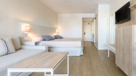 Direct naar: * Ligging () * Faciliteiten () * Restaurants & bars () * Zwembaden () * Hotelkamers () * Activiteiten & ontspanning () * Kinderfaciliteiten () * Verzorging () Ligging: Fergus Club Palmanova Park * Gelegen in Palma Nova * Bars, restaurants en winkels in de directe omgeving * Ca. 300 meter van Palmanova * Ca. 100 meter van een bushalte * Ca. 300 meter van het zandstrand * Ca. 20 kilometer van Palma de Mallorca (ca. 30 min., frequente busverbinding) Faciliteiten * 1 gebouw met 3 verdiepingen * 305 kamers * Liften * 24-uursreceptie * Lobby * Bagageruimte * Tuin * Wifi * Doktersservice* op aanvraag * Privé parkeergelegenheid *Tegen betaling Restaurants & bars * 1 buffetrestaurant * Snack restaurant * 1 à la carterestaurant (Italiaans en Burgers)* * 2 bars, waarvan de Mc Kevitts's Bar met toeslag* *Tegen betaling Hotelkamers * Standaardkamer (max. 2 volw. + 2 kind. t/m 14 jaar) * Ca. 25 m2 * Ruim en comfortabel * Airconditioning * Televisie * Telefoon* * Minibar * Kluisje* * Wifi* * Bad of douche * Toilet * Föhn * Balkon of terras met zitje * Tegen een meerprijs boekbaar als Standaardkamer met zwembadzicht (max. 2 volw. + 2 kind. t/m 14 jaar) * De voordeelkamer kan qua faciliteiten afwijken van de standaardkamer (2-4 personen) *Tegen betaling * Standaardkamer (max. 2 volw. + baby) * Dezelfde faciliteiten als de Standaardkamer * Standaardkamer Magnus (max. 2 volw. + 2 kind. t/m 14 jaar) * Gevulde minibar bij aankomst, dagelijks aangevuld met water * Premium drankjes bij de bar * Gratis kluisje * Nespresso koffiemachine met bijbehorende koffie capsules * Badjas * Slippers * Playstation * Dezelfde faciliteiten als de standaardkamer * Boek je een Magnus kamer dan mag je in het a-la-carte restaurant (Mc Kevitts’s Bar) 1x dineren tijdens het Gin & Burger thema en 1x dineren tijdens het thema Pizza, Pasta & Beer. * Ook boekbaar met bubbelbad (2-4 personen) Sport & ontspanning * Fitness * Aerobics * Yoga * Boccia * Biljart* * Tafeltennis * Gameroom* * Dagelijks entertainment *Tegen betaling Kinderfaciliteiten * 1 kinderbad * Splash pool * Midiclub (9-12 jaar) * Teenageclub (13-16 jaar) * Minidisco * Babybedjes (op aanvraag en op basis van beschikbaarheid) Zwembaden * 1 buitenzwembad * Zonneterras * Ligbedden en parasols (zwembad) * Badhanddoekenservice (met borg) Verzorging Zomer: Fergus Club Palmanova Park * Verblijf o.b.v. All Inclusive * Ontbijt in buffetvorm (07.30-10.30 uur) * Lunch in buffetvorm (12.30-14.30 uur) * Diner in buffetvorm (19.00-21.00 uur) * Diverse snacks (11.00-17.00 uur) * Geselecteerde lokale (non-)alcoholische drankjes van 10.30 tot 23.00 uur * Bij verblijf Magnus: 1x diner tijdens Gin & Burger thema en 1x diner tijdens Pizza, pasta & bier en 1 drankje per dag in de Mc Kevitts's Bar (bier, wijn, frisdrank, koffie, thee) * Tegen betaling: import drankjes en alle consumpties na 23.00 uur