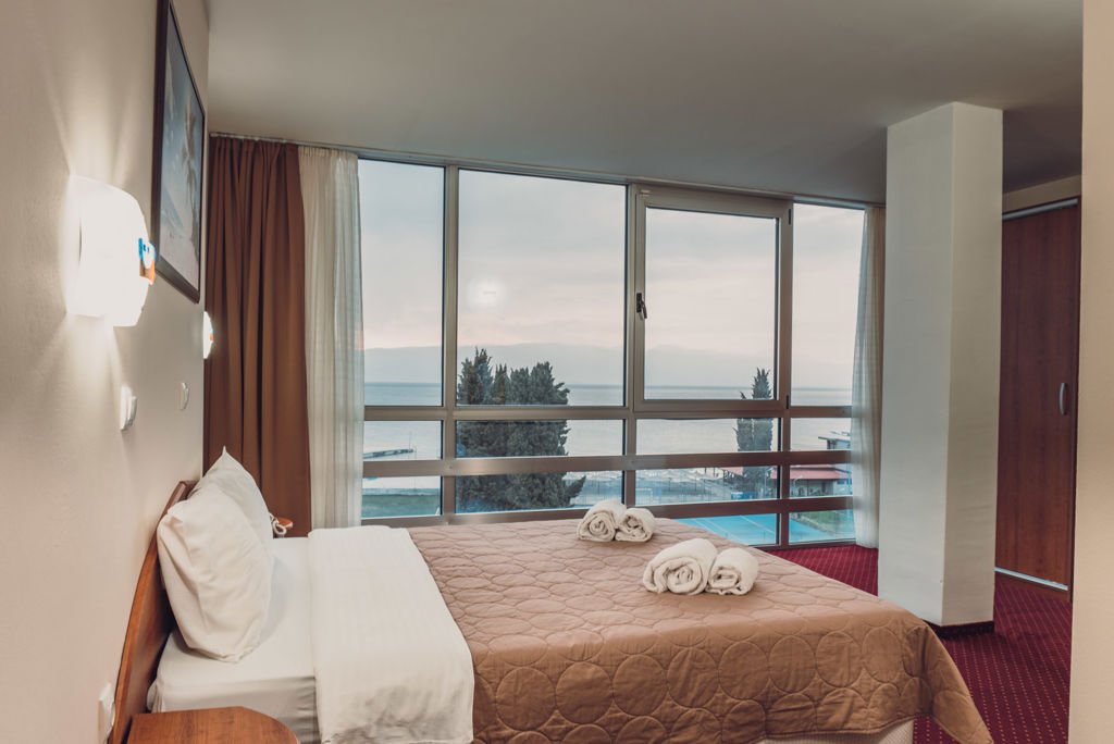 Direct naar: * Ligging () * Faciliteiten () * Restaurants & bars () * Zwembaden () * Hotelkamers () * Activiteiten & ontspanning () * Kinderfaciliteiten () * Verzorging () Ligging Aqualina Hotel * Direct aan het Meer van Ohrid * Op ca. 6 kilometer van het centrum van Ohrid-Stad * Dichtstbijzijnde bar en restaurant op ca. 100 meter * Dichtstbijzijnde winkel op ca. 200 meter * Bushalte op ca. 100 meter Faciliteiten * 2 gebouwen met maximaal 8 verdiepingen * Bij beide gebouwen is een lift aanwezig * 93 kamers * 24-uursreceptie * Lobby * Tuin * Wifi * Wasservice* * Openbare en privé parkeergelegenheid *Tegen betaling Restaurants & bars * 1 buffetrestaurant * 1 bar Zwembaden * 1 buitenzwembad * Zonneterras * Ligbedden en parasols gratis (zwembad) Hotelkamers * Standaardkamer (1-3 personen) * Ca. 16 m² * Telefoon* * Airconditioning * Televisie * Koelkastje * Kluisje * Wifi * Douche * Toilet * Föhn *Tegen betaling Activiteiten & ontspanning * Fitness * Basketbal * Volleybal * Voetbal * Biljart* * Tafeltennis * Tennis * Gameroom* * Binnenzwembad *Tegen betaling Kinderfaciliteiten * 1 kinderzwembad * 1 kinderbad met speeltoestellen en glijbaantjes Verzorging Zomer: Aqualina Hotel * Verblijf o.b.v. All Inclusive: * Ontbijt in buffetvorm (07.00-10.00 uur) * Lunch in buffetvorm (13.00-15.00 uur) * Diner in buffetvorm (19.00-21.30 uur) * Diverse snacks op vaste tijden * IJs op vaste tijden * Geselecteerde lokale (non-)alcoholische dranken (10.00-22.00 uur) Extra informatie: Bij deze pakketreis is een huurauto inbegrepen, daarom vervalt de transfer van de luchthaven naar de accommodatie en vice versa. Bij aankomst op je bestemming staat de auto voor je klaar op de luchthaven. Op de dag van vertrek lever je de auto hier ook weer in. De reisleiding, aanwezig op de luchthaven, verwijst je naar het autoverhuurbedrijf en geeft je een welkomstenvelop. Is je reisgezelschap te groot voor één auto? Boek dan een tweede auto bij. Voor prijzen en beschikbaarheid kun je contact opnemen met ons Contact Center. Informatie & Voorwaarden Huurauto ()