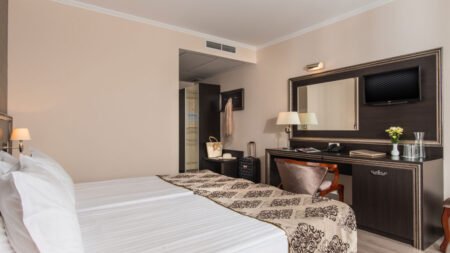 Direct naar: * Ligging () * Faciliteiten () * Restaurants & Bars () * Hotelkamers () * Sport & Ontspanning () * Kinderfaciliteiten () * Zwembaden () * Verzorging () Ligging: Diamant Residence * Openbaar zandstrand Sunny Beach op circa 450 meter * Dichtstbijzijnde winkel op circa 50 meter * Dichtstbijzijnde restaurant op circa 100 meter * Dichtstbijzijnde bar op circa 200 meter * Nessebar op circa 1 kilometer * Sunny Beach op circa 3 kilometer * Action Aquapark op circa 4 kilometer * Bushalte op circa 50 meter Faciliteiten * 1 gebouw met 7 verdiepingen * 3 liften * 222 kamers * 24-uursreceptie * Bagageruimte * Lobby * Tuin * Wifi * Kapsalon* * Winkeltje* * Wasservice* * Doktersservice* * Privé en openbare parkeergelegenheid* *Tegen betaling Restaurants & bars * 1 buffetrestaurant * 1 snackbar * 2 bars Hotelkamers * Standaardkamer (1-3 personen) * Ca. 20 m² * Telefoon* * Airconditioning * Televisie * Minibar* * Kluisje* * Wifi * Douche * Toilet * Föhn * Balkon met zitje *Tegen betaling * Familiekamer (3-6 personen) * Ca. 38 m² * Bestaat uit 2 ruimtes * Dezelfde faciliteiten als de standaardkamer Sport & Ontspanning * Fitness * Aerobics * Darts * Boccia * Biljart* * Tafeltennis * Gameroom* * Duikcentrum* * Watersporten aan het strand* * Turks bad* * Sauna* * Binnenzwembad* * Bubbelbad* * Massages en schoonheidsbehandelingen* * 6 dagen per week entertainment (01-06 t/m 15-09) *Tegen betaling Kinderfaciliteiten * 1 kinderzwembad * Miniclub 6 dagen per week (4-12 jaar) (01-06 t/m 15-09) * Minidisco 6 dagen per week (01-06 t/m 15-09) * Speeltuintje * Babybedje op aanvraag Zwembad * 1 buitenzwembad * Zonneterras met gratis ligbedden, matrasjes en parasols * Gratis badhanddoekenservice Verzorging Zomer: Diamant Residence * Verblijf o.b.v. All Inclusive: * Ontbijt in buffetvorm (07.30-10.00 uur) * Laat ontbijt, self service (10.30-12.00 uur) * Lunch in buffetvorm (12.30-14.00 uur) * Diner in buffetvorm (18.30-21.00 uur) * Snacks (15.00-17.00 uur) * Koffie/thee en koekjes (15.00-17.00 uur) * IJs (11.00-18.00 uur) * Geselecteerde lokale (non-)alcoholische dranken (10.00-23.00 uur) * Tegen betaling: import drankjes Extra informatie: Bij deze pakketreis is een huurauto inbegrepen, daarom vervalt de transfer van de luchthaven naar de accommodatie en vice versa. Bij aankomst op je bestemming staat de auto voor je klaar op de luchthaven. Op de dag van vertrek lever je de auto hier ook weer in. De reisleiding, aanwezig op de luchthaven, verwijst je naar het autoverhuurbedrijf en geeft je een welkomstenvelop. Is je reisgezelschap te groot voor één auto? Boek dan een tweede auto bij. Voor prijzen en beschikbaarheid kun je contact opnemen met ons Contact Center. Informatie & Voorwaarden Huurauto ()