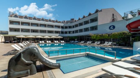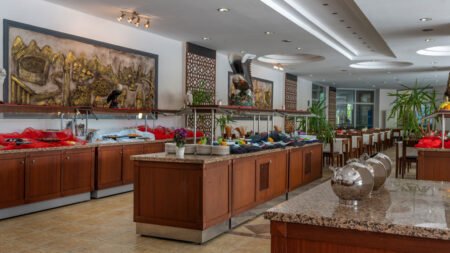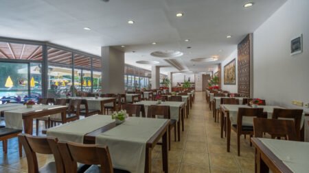 Direct naar: * Ligging () * Faciliteiten () * Restaurants & Bars () * Hotelkamers () * Sport & Ontspanning () * Kinderfaciliteiten () * Zwembaden & Strand () * Verzorging () Ligging: Grand Viking * Op ca. 700 meter van het centrum van Kemer * Op ca. 1,5 kilometer van het privéstrand * Gratis shuttleservice naar Kemer en het strand * Bushalte op ca. 700 meter * Winkels en restaurants op ca. 300 meter Faciliteiten * 1 gebouw met 4 verdiepingen * 1 lift * 106 kamers * 24-uursreceptie * Bagageruimte * Lobby * Tuin * Wifi in de lobby * Openbare parkeergelegenheid Restaurants & bars * 1 buffetrestaurant * Turkish House met versgebakken gözleme * 1 bar Hotelkamers * Standaardkamer (1-3 personen) * Ca. 22 m² * Telefoon* * Airconditioning * Televisie * Minibar (leeg) * Wifi* * Douche in bad * Toilet * Föhn * Balkon met zitje * De voordeelkamer (ca. 16 m², 2 personen) beschikt over dezelfde faciliteiten als de standaardkamer, echter zonder balkon *Tegen betaling * Familiekamer (min. 4 pers. en max. 4 volw. + 1 kind) * Ca. 46 m² * Bestaat uit 2 ruimtes * Dezelfde faciliteiten als de Standaardkamer Sport & Ontspanning * Fitness (vooraf reserveren) * Darts * Tafeltennis * Watersporten aan het strand* * Turks bad* * Sauna* * Binnenzwembad * Massages en schoonheidsbehandelingen* * 2 avonden per week livemuziek *Tegen betaling Kinderfaciliteiten * 1 kinderzwembad met glijbaantje (op vaste tijden geopend) * 1 binnen kinderzwembad * Speeltuintje Zwembaden & Strand * 1 buitenzwembad met glijbaan (op vaste tijden geopend) * 1 binnenzwembad * Zonneterras * Privéstrand * Ligbedden, matrasjes en parasols gratis (zwembad en strand) * Badhanddoekenservice tegen betaling Verzorging Zomer: Grand Viking * Verblijf o.b.v. All Inclusive: * Ontbijt in buffetvorm (08.00-10.00 uur) * Lunch in buffetvorm (13.00-14.00 uur) * Diner in buffetvorm (19.00-21.00 uur) * Snacks (10.30-12.30 en 14.30-16.30 uur) * Koffie/thee en koekjes (16.30-17.30 uur) * Geselecteerde lokale alcoholische en alcoholvrije drankjes van 11.00 tot 22.00 uur * Tegen betaling: Turkse koffie, ijs, import drankjes (indien voorradig), verse vruchtensappen, (fris)drank in flessen en alles na 22.00 uur Extra informatie: Bij deze pakketreis is een huurauto inbegrepen, daarom vervalt de transfer van de luchthaven naar de accommodatie en vice versa. De reisleiding, aanwezig op de luchthaven, verwijst je naar het autoverhuurbedrijf en geeft je een welkomstenvelop. Is je reisgezelschap te groot voor één auto? Boek dan een tweede auto bij. Voor prijzen en beschikbaarheid kun je contact opnemen met ons Contact Center. Informatie & Voorwaarden Huurauto ()