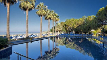 Direct naar: * Ligging () * Faciliteiten () * Restaurants & bars () * Zwembaden () * Hotelkamers () * Activiteiten & ontspanning () * Kinderfaciliteiten () * Verzorging () Ligging Ömer Prime Holiday Resort * Omgeven door palm- en pijnboombossen * Direct aan het strand * Op ca. 4 kilometer van Kusadasi * Op ca. 12 kilometer van Davutlar * Bushalte voor het hotel * Dichtstbijzijnde winkels en restaurants op ca. 1 kilometer Faciliteiten * Volledig gerenoveerd in 2023 * 2 hoofdgebouwen met maximaal 5 verdiepingen en 4 clubgebouwen met maximaal 1 verdieping * Alleen liften in de hoofdgebouwen * 249 kamers * 24-uursreceptie * Lobby * Bagageruimte * Tuin * Wifi * Roomservice* * Winkeltje en minimarkt* * Wasservice* * Doktersservice* * Kapsalon* * Openbare parkeergelegenheid * Privé parkeergelegenheid *Tegen betaling Restaurants & bars * 1 buffetrestaurant * 3 à-la-carterestaurants (vooraf reserveren) * Patisserie * 5 bars Zwembaden * 1 buitenzwembad * 1 relax buitenzwembad (vanaf 16 jaar) * 1 bubbelbad zwembad * 1 buitenzwembad met 2 glijbanen (op vaste tijden geopend) * 1 binnenzwembad * Zonneterras * Ligbedden, badhanddoekenservice, matrasjes en parasols gratis (zwembad en strand) Hotelkamers * Standaard clubkamer (1-3 personen) * Ca. 24-25 m² * Telefoon* * Airconditioning * Televisie * Minibar (bij aankomst gevuld met frisdrank en water, daarna elke dag gevuld met water) * Kluisje * Koffie-/theezetfaciliteiten * Wifi * Douche * Toilet * Föhn * Balkon of terras met zitje *Tegen betaling * Standaardkamer hoofdgebouw (1-3 personen) * Ca. 25 m² * Dezelfde faciliteiten als de Standaard clubkamer * Superiorkamer hoofdgebouw (1-3 personen) * Ca. 25 m² * Dezelfde faciliteiten als de Standaard clubkamer * Familiekamer Club (1 badkamer) (2-4 personen) * Ca. 24-25 m² * Gelegen in het club gedeelte * Bestaat uit 2 ruimtes gescheiden door een deur, in beide ruimtes een televisie * 1 ruimte bestaat uit 2 eenpersoonsbedden en de ander uit 1 groot tweepersoonsbed * Dezelfde faciliteiten als de Standaard clubkamer * Familiekamer Club (2 badkamers) (3-5 personen) * Ca. 33 m² * Gelegen in het club gedeelte * Bestaat uit 2 ruimtes, in beide ruimtes airconditioning en een televisie * 2 badkamer met douche, toilet en föhn * Dezelfde faciliteiten als de Standaard clubkamer * Familiekamer Club swim up (2-4 personen) * Ca. 31 m² * Gelegen in het club gedeelte * Bestaat uit 2 ruimtes gescheiden door een schuifdeur, in beide ruimtes een televisie * Dezelfde faciliteiten als de Standaard clubkamer * Terras met zitje en directe toegang tot een gezamenlijk zwembad * Familiekamer swim up hoofdgebouw (2-4 personen) * Ca. 31 m² * Gelegen in het hoofdgebouw * Dezelfde faciliteiten als de Standaard clubkamer * Terras met zitje en directe toegang tot een gezamenlijk zwembad Activiteiten & ontspanning * Fitness * Aerobics * Yoga * Boccia * Basketbal * Beachvolleybal * Volleybal * Darts * Voetbal * Tafelvoetbal * Gameroom* * Watersporten aan het strand* * Turks bad * Sauna * Massages* * Dagelijks entertainment * Shows en livemuziek *Tegen betaling Kinderfaciliteiten * 1 kinderzwembad met 2 glijbaantjes (op vaste tijden geopend) * Miniclub (4-12 jaar) * Minidisco * Speeltuintje * Babybedjes (op aanvraag en op basis van beschikbaarheid) * Babysitservice op aanvraag en tegen betaling Verzorging Zomer: Ömer Prime Holiday Resort * Verblijf o.b.v. Ultra All Inclusive: * Ontbijt in buffetvorm (07.00-10.00 uur) * Laat ontbijt in buffetvorm (10.00-10.30 uur) * Lunch in buffetvorm (12.30-14.00 uur) * Diner in buffetvorm (19.00-21.00 uur) * Diverse snacks (11.00-16.00 uur) * Koffie/thee en koekjes (11.00-19.00 uur) * IJs (14.00-16.00 uur) * Middernachtsnack (00.00-01.00 uur) * Tijdens je verblijf van minimaal 5 nachten mag je 1x à-la-carte dineren per à-la-carterestaurant (vooraf reserveren) * Geselecteerde lokale (non-)alcoholische dranken en een selectie import dranken (24/7) * Tegen betaling: import drankjes en roomservice Extra informatie: Bij deze pakketreis is een huurauto inbegrepen, daarom vervalt de transfer van de luchthaven naar de accommodatie en vice versa. De reisleiding, aanwezig op de luchthaven, verwijst je naar het autoverhuurbedrijf en geeft je een welkomstenvelop. Is je reisgezelschap te groot voor één auto? Boek dan een tweede auto bij. Voor prijzen en beschikbaarheid kun je contact opnemen met ons Contact Center. Informatie & Voorwaarden Huurauto Kusadasi (Izmir) () Informatie & Voorwaarden Huurauto Bodrum ()