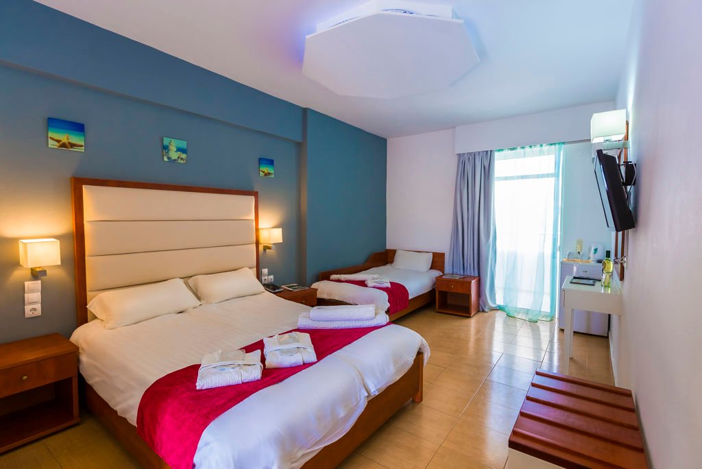 Direct naar: * Ligging () * Faciliteiten () * Restaurants & bars () * Zwembaden () * Hotelkamers () * Activiteiten & ontspanning () * Kinderfaciliteiten () * Verzorging () Ligging Rethymno Residence * Op loopafstand van het openbare zandstrand * Ca. 6 kilometer van het centrum van Rethymno * Bushalte op ca. 100 m * Taxi op ca. 100 m * Winkels, restaurants en bars op ca. 100 m Faciliteiten * 6 gebouwen met 2 verdiepingen * 153 kamers * 2 liften * 24-uursreceptie * Lobby * Tuin * Roomservice* * Wifi * Wasservice* * Doktersservice* *Tegen betaling Restaurants & bars * 1 buffetrestaurant * 3 bars Zwembaden * 3 buitenzwembaden * 1 buitenzwembad met 5 glijbanen * 1 binnenzwembad * Ligbedden en parasols gratis (zwembad) * Badhanddoekenservice* *Tegen betaling Hotelkamers * Standaard kamer (1-2 personen) * Ca. 17-20 m² * Telefoon* * Airconditioning * Televisie * Minibar * Kluisje* * Wifi * Douche * Toilet * Föhn * Balkon of terras met zitje * Tegen een meerprijs boekbaar met privézwembad *Tegen betaling * Standaard familiekamer (2-3 personen) * Ca. 22-27 m² * Dezelfde faciliteiten als de Standaard kamer * Tegen een meerprijs boekbaar met privézwembad * Standaard familiekamer met één slaapkamer (2-4 personen) * Ca. 45 m² * Aparte woonkamer en aparte slaapkamer * Bad en inloopdouche * Dezelfde faciliteiten als de Standaard kamer * Tegen een meerprijs boekbaar met privézwembad * Standaard familiekamer met twee slaapkamers (2-6 personen) * Ca. 55 m² * Aparte woonkamer en aparte slaapkamers * Koffie-/theezetfaciliteiten (op aanvraag) * Inloopdouche * Dezelfde faciliteiten als de Standaard kamer * Tegen een meerprijs boekbaar met privézwembad Activiteiten & ontspanning * Aerobics * Yoga * Tafeltennis * Duikcenter* * Watersporten aan het strand* * Fitness/gym * Spacenter: * Hamam * Binnenzwembad * Bubbelbad * Massages* * 6x per week entertainment * Dagelijks shows * Livemuziek 4x per week, weersafhankelijk *Tegen betaling Kinderfaciliteiten * 2 kinderzwembaden waarvan 1 met glijbanen * Miniclub (4-12 jaar) * Kinderentertainment * Kinderanimatie * Minidisco * Speeltuin * Babybedjes (op aanvraag en op basis van beschikbaarheid) * Babysitservice op aanvraag* en tegen betaling *Tegen betaling Verzorging Zomer: Rethymno Residence * Verblijf o.b.v. All Inclusive: * Ontbijt in buffetvorm (07.30-10.00 uur) * Laat ontbijt in buffetvorm (10.30-12.00 uur) * Lunch in buffetvorm (12.30-14.00 uur) * Diner in buffetvorm (18.30-21.30 uur) * Geselecteerde lokale (non-)alcoholische dranken Extra informatie: Bij deze pakketreis is een huurauto inbegrepen, daarom vervalt de transfer van de luchthaven naar de accommodatie en vice versa. Bij aankomst op je bestemming staat de auto voor je klaar op de luchthaven. Op de dag van vertrek lever je de auto hier ook weer in. De reisleiding, aanwezig op de luchthaven, verwijst je naar het autoverhuurbedrijf en geeft je een welkomstenvelop. Informatie & Voorwaarden Huurauto ()