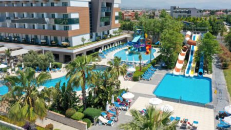 Direct naar: * Ligging () * Faciliteiten () * Restaurants & bars () * Hotelkamers () * Sport & ontspanning () * Kinderfaciliteiten () * Zwembaden () * Verzorging () Ligging * Ca. 500 meter van het privéstrand * Ca. 500 meter van winkels, restaurants en bars * Colakli op ca. 5 kilometer * Ca. 12 kilometer van Side centrum * Ca. 17 kilometer van Manavgat centrum * Bushalte voor de deur * Gratis shuttleservice naar het strand Faciliteiten * 1 gebouw met 5 verdiepingen * 5 liften * 370 kamers * 24-uursreceptie * Bagageruimte * Lobby * Tuin * Wifi in de lobby, bij het zwembad, het strand en in de kamers * Winkeltjes en minimarkt* * Wasservice* * Doktersservice* * Openbare parkeerplaatsen *Tegen betaling Restaurants & bars * 1 buffetrestaurant * 2 à-la-carterestaurants, Turks & Mediterraans (vooraf reserveren en tegen betaling) * 4 bars * Patisserie * Roomservice (tegen betaling) Hotelkamers * Standaardkamer (1-3 personen) * Ca. 32 m² * Airconditioning * Televisie * Telefoon* * Koffie- en theezet faciliteiten * Minibar (gevuld met frisdrank) * Kluisje * Wifi * Douche * Toilet * Föhn * Balkon met zitje * Tegen een meerprijs te boeken met zijzeezicht * De voordeelkamer (2-3 personen) is gelijk aan de Standaardkamer echter gelegen op de begane grond *Tegen betaling * Standaardkamer zwembadzicht (1-3 personen) * Ca. 32 m² * Beschikt over dezelfde faciliteiten als de Standaardkamer * De volgende extra's zijn voor zomer 2026 inbegrepen: * Welkomstcocktail bij aankomst * Badjas voor volwassenen * 1 strandtas * 1 gratis proefmassage van 15 min per volwassene * 50% korting op wellness-diensten * 20% korting op alle pakketten * Gratis high-speed wifi door het hele hotel * 50% korting op wasservices bij verblijf vanaf 7 nachten * Lunchpakket op de dag van vertrek * Ruime standaardkamer (max. 2 volw. + 2 kind.) * Ca. 36 m² * Bestaat uit 1 ruimte met slaapbank voor de kinderen * Dezelfde faciliteiten als de Standaardkamer * Familiekamer (max. 2 volw. + 2 kind. of 3 volw. + 1 kind) * Ca. 38 m2 * Bestaat uit 2 ruimtes met tussendeur * Dezelfde faciliteiten als de Standaardkamer Sport & ontspanning * Fitnessruimte * Tafeltennis * Aerobics * Boccia * Darts * Beachvolleybal * Gameroom* * Biljart* * Watersporten aan het strand* * Sauna * Turks bad * Massages* * 6 dagen per week een entertainment * 6 dagen per week shows * 1 keer per week live muziek *Tegen betaling Kinderfaciliteiten * 1 kinderzwembad (op vaste tijden geopend) * Binnenzwembad voor kinderen (gesloten in het zomerseizoen tussen ca. 1 april en 31 oktober) * Miniclub 6 dagen per week (4-12 jaar) * Minidisco 6 dagen per week * Speeltuintje * Babybedje (als preferentie toe te voegen in het boekingsformulier) Zwembaden * 1 buitenzwembad met glijbanen (op vaste tijden geopend) * Binnenzwembad (gesloten in het zomerseizoen tussen ca. 1 april en 31 oktober) * Zonneterras * Privéstrand * Ligbedden en parasols gratis (zwembad en strand) * Badhanddoekenservice Verzorging Zomer: Terrace Elite Resort * Je verblijft o.b.v. Ultra All Inclusive: * Ontbijt in buffetvorm (07.00-10.00 uur) * Laat ontbijt in buffetvorm (10.00-11.00 uur) * Lunch in buffetvorm (12.30-14.30 uur) * Diner in buffetvorm (18.30-21.00 uur) * Diverse snacks (12.00-15.30 uur) * Koffie/thee en koekjes (14.30-18.00) * IJsjes (15.30-16.30 uur) * Nachtsnacks (23.00-07.00 uur) * Selectie lokale (non-)alcoholische dranken (24/7) * Tegen betaling: roomservice, import dranken, verse vruchtensap, dranken in flessen en diner in de à-la-carterestaurants (vooraf reserveren) Extra informatie: Bij deze pakketreis is een huurauto inbegrepen, daarom vervalt de transfer van de luchthaven naar de accommodatie en vice versa. De reisleiding, aanwezig op de luchthaven, verwijst je naar het autoverhuurbedrijf en geeft je een welkomstenvelop. Is je reisgezelschap te groot voor één auto? Boek dan een tweede auto bij. Voor prijzen en beschikbaarheid kun je contact opnemen met ons Contact Center. Informatie & Voorwaarden Huurauto ()