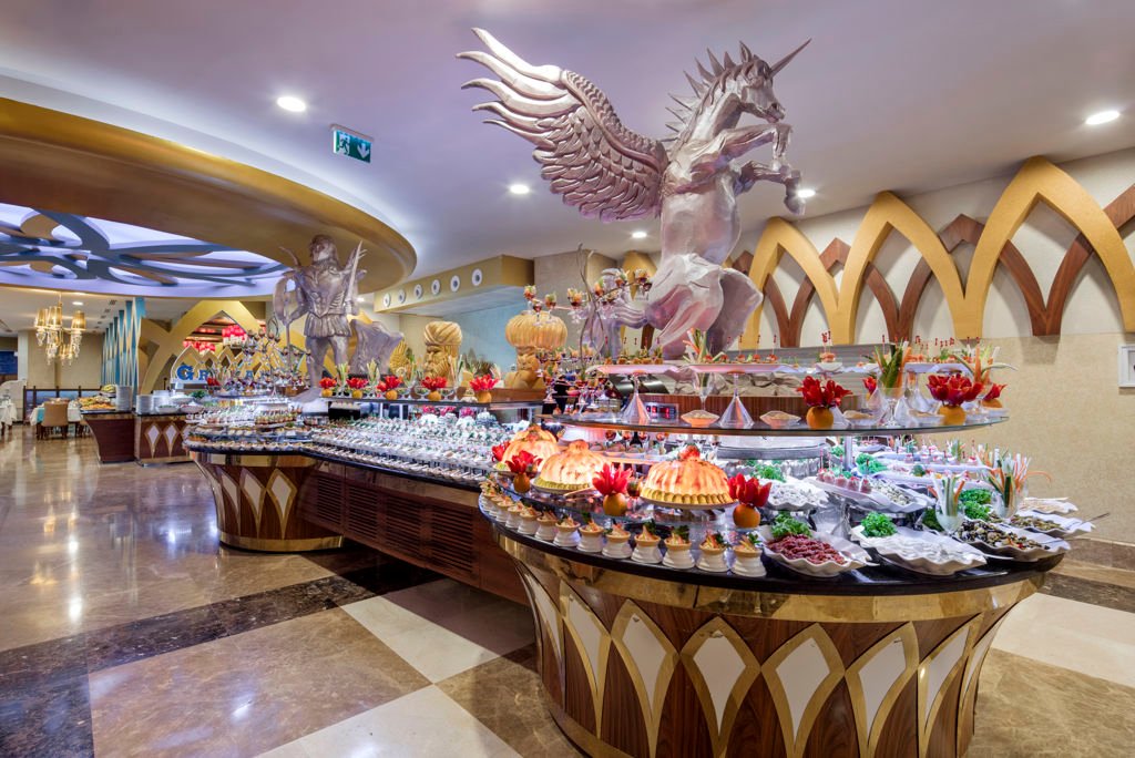 Zomer Wanneer je tussen 20-04-2026 en 31-10-2026 in deze accommodatie verblijft, is onderstaande informatie van toepassing. * Ligging * Gelegen aan het privéstrand * Zandstrand * Ligbedden met matrasjes * Parasol * Dichtstbijzijnde winkel op circa 2 kilometer * Dichtstbijzijnde restaurant op circa 2 kilometer * Dichtstbijzijnde bar op circa 2 kilometer * Alanya op circa 30 kilometer * Side op circa 34 kilometer * Manavgat op circa 30 kilometer * Bushalte op circa 200 meter * Taxistandplaats op circa 200 meter * Algemeen & faciliteiten * Kindvriendelijk complex * 1 gebouw * Maximaal 9 verdiepingen * 598 kamers * Receptie * 24 uur per dag * Lobby met zitgedeelte * 6 liften * Lift in elk gebouw * Bagageruimte * Wifi in alle openbare ruimtes * Meerdere winkels * Minimarkt * Wasservice tegen betaling * Doktersservice tegen betaling * Tuin * Privé parkeergelegenheid * Restaurants & bars * Buffetrestaurant * 4 à-la-carterestaurants * All day dining restaurant (vooraf reserveren) tegen betaling voor alle gasten * 3 snackbars * Roomservice tegen betaling * 11 drinkgelegenheden * 11 bars * Activiteiten & ontspanning * Aerobics * Beachvolleybal * Biljart tegen betaling * Bowling tegen betaling * Darts * Fitness * Midgetgolf * Tafeltennis * Watersporten tegen betaling * Spafaciliteiten * Sauna * Turks stoombad * Bubbelbad binnen tegen betaling * Massages tegen betaling * Schoonheidsbehandelingen tegen betaling * Discotheek * Gameroom toegang tegen betaling * Animatie voor volwassenen en kinderen * 7 keer per week * Shows voor volwassenen en kinderen * 2 keer per week * Livemuziek * Zwembaden * 3 buitenzwembaden * Relaxbad * Eén van deze zwembaden heeft 3 glijbanen * Open in het zomerseizoen * Open tussen * Buitenzwembad voor kinderen * Binnenzwembad * Verwarmd * Binnenzwembad voor kinderen * Zonneterras * Ligbedden met matrasjes * Parasol * Badhanddoekenservice * Kinderfaciliteiten * Mini club (4-12 jaar) * 7 keer per week * Minidisco * Buitenspeeltuin * Verzorging * Ultra All Inclusive * Ontbijt in buffetvorm (07.00-10.00 uur) * Laat ontbijt in buffetvorm (10.00-11.00 uur) * Lunch in buffetvorm (12.30-14.00 uur) * Diner in buffetvorm (19.00-21.00 uur) * Snacks (12.00-17.00 uur) * Koffie, thee & koekjes (10.00-20.00 uur) * IJs (10.00-20.00 uur) * Middernachtsnack (22.00-06.00 uur) * Selectie lokale (non-)alcoholische drankjes (08.00-00.00 uur) * Tegen betaling: dineren in één van de à-la-carterestaurants, drankjes in flessen, drankjes na 00.00 uur, import drankjes, verse vruchtensappen, energiedranken en roomserviceHotelkamers * 2-persoonskamer Voordeel DE * Locatie kan afwijken ten opzichte van andere kamertypes * Oppervlakte circa 26 m² * Landzicht * Airconditioning * Kluisje * Satelliettelevisie * Telefoon tegen betaling * Eet- en drinkfaciliteiten * Koffie- en theefaciliteiten * Minibar * Dagelijks aangevuld met water en frisdrank * Badkamer douche, toilet, föhn en badslippers * Wifi * Geen balkon * 2-persoonskamer Standaard Landzicht DZL * Oppervlakte tussen 27 en 36 m² * Landzicht * Eén grote kamer * Airconditioning * Kluisje * Satelliettelevisie * Telefoon * Eet- en drinkfaciliteiten * Koffie- en theefaciliteiten * Minibar * Dagelijks aangevuld met water en frisdrank * Badkamer douche, toilet, föhn, badjassen en badslippers * Wifi * Balkon (zitje) * 2-persoonskamer Standaard Zeezicht DZM * Oppervlakte tussen 27 en 36 m² * Zeezicht * Airconditioning * Kluisje * Satelliettelevisie * Telefoon tegen betaling * Eet- en drinkfaciliteiten * Koffie- en theefaciliteiten * Minibar * Dagelijks aangevuld met water en frisdrank * Badkamer douche, toilet, föhn, badjassen en badslippers * Wifi * Balkon (zitje) * Familiekamer Standaard Zeezicht FZM * Oppervlakte circa 50 m² * Zeezicht * Meerdere slaapkamers * Meerdere slaapkamers met meerdere slaapplaatsen * Meerdere slaapkamers met meerdere slaapplaatsen * Airconditioning * Kluisje * Satelliettelevisie * Telefoon tegen betaling * Eet- en drinkfaciliteiten * Koffie- en theefaciliteiten * Minibar * Dagelijks aangevuld met water en frisdrank * Badkamer douche, toilet, föhn, badjassen en badslippers * Wifi * Balkon (zitje) * Familiekamer Duplex Landzicht FFL * Oppervlakte tussen 65 en 75 m² * Landzicht * In duplexstijl * Airconditioning * Kluisje * Satelliettelevisie * Telefoon tegen betaling * Eet- en drinkfaciliteiten * Koffie- en theefaciliteiten * Minibar * Dagelijks aangevuld met water en frisdrank * 2 badkamers * Wifi * Balkon of terras (zitje) * Child Friendly Room CF1