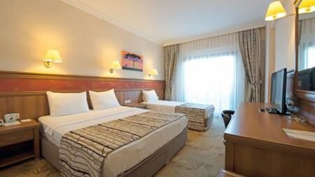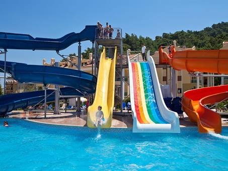 Voor de kinderen betekent een vakantie in dit hotel volop waterpret. Onbeperkt van de glijbanen af, totdat ze trek krijgen in een ijsje. Het hotel biedt een oneindige lijst met faciliteiten en vakantieplezier. Relaxen kan ook, maar het is vooral de gezelligheid die je hier brengt. En een All Inclusive tegen een scherpe prijs. De kamers van Green Nature Resort zijn zonder al te veel poespas ingericht, maar je bent toch liever de hele dag buiten in actie. Want zeg nou zelf, met die glijbanen, de Turkse zon op je bol en een verkoelend drankje van de bar heb je verder toch niets meer nodig?