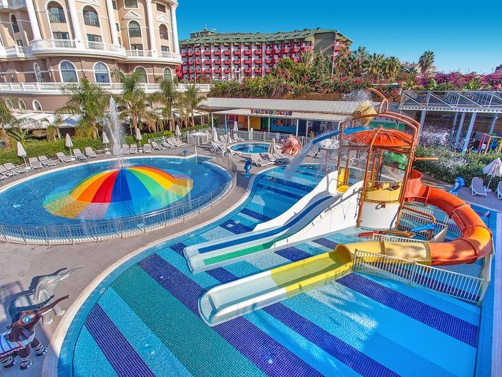 Zin in een luxe all inclusive zonvakantie met het hele gezin? Waarin je geniet van heerlijk eten, tal van topfaciliteiten en je je nergens druk om hoeft te maken? Kom dan naar Alanya aan de Turkse Rivièra en laat je in de watten leggen in Hotel Haydarpasha Palace. Dit 5-sterrenhotel, direct aan zee, heeft alle ingrediënten in huis voor de perfecte strandvakantie. Spring in een van de 5 zwembaden, glij van de 13 spetterende waterglijbanen, werk je in het zweet dankzij de vele sportmogelijkheden en ontspan in de spa. Je smaakpapillen komen ook niks tekort; er worden in de 5 verschillende restaurants gerechten van over de hele wereld geserveerd. Daarnaast zijn er 8 (snack)bars. En ook aan de kleintjes is gedacht: speciaal voor hen is er onder meer een kids club.