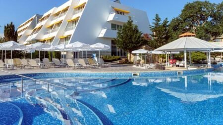 Hotel AluaSun Helios Beach is een gezellig all-inclusive hotel direct aan het prachtige gouden zandstrand van Obzor. Dit familiehotel ligt op een geweldige locatie, dicht bij het centrum, zodat je alles bij de hand hebt. Het strand strekt zich uit vlak onder het hotel en nodigt je uit om lange wandelingen te maken langs de waterkant en te genieten van een duik in zee. Je kunt ook een verfrissende duik nemen in het heerlijke zwembad van het hotel, dat ook een apart kinderbad heeft.