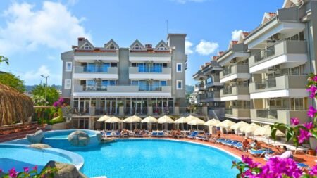 Het sfeervolle Hotel Begonville ligt op een mooie locatie in de bruisende badplaats Marmaris. Je hoeft alleen de levendige boulevard maar over te steken voordat je op het strandzand tussen je tenen voelt kriebelen. Het centrum ligt iets verder weg, maar met de dolmus ben je er zo.