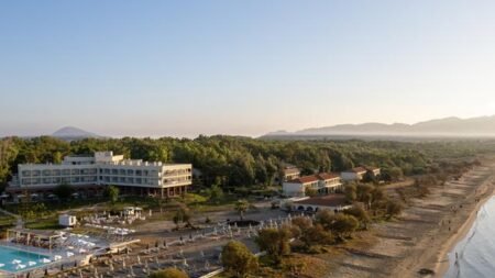 Hotel Domes Aulūs Zante biedt je een luxe vakantie in een perfecte en ongedwongen ambiance. Deze luxe hideaway ligt direct aan het zandstrand met uitzicht over de baai van Laganas. Dit hotel heeft een rijke geschiedenis en werd onlangs volledig gerenoveerd met verfijnde en natuurlijke materialen. De authentieke Griekse gastvrijheid zul je hier zeker gaan ervaren: iedereen staat klaar om je een fantastische vakantie te bezorgen.