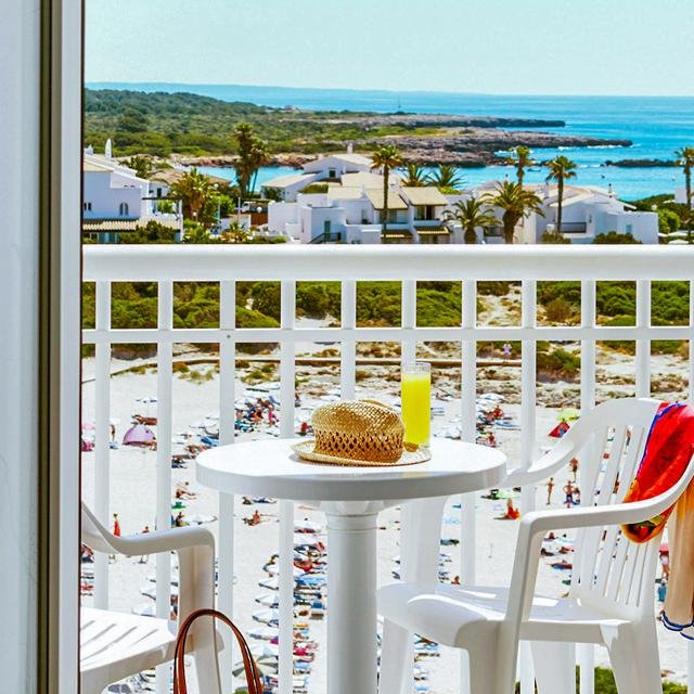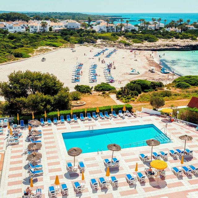Hotel Globales Cala ’n Bosch ligt direct aan het prachtige strand. Na een paar passen kun je je handdoek al uitrollen en genieten van zon en zee.