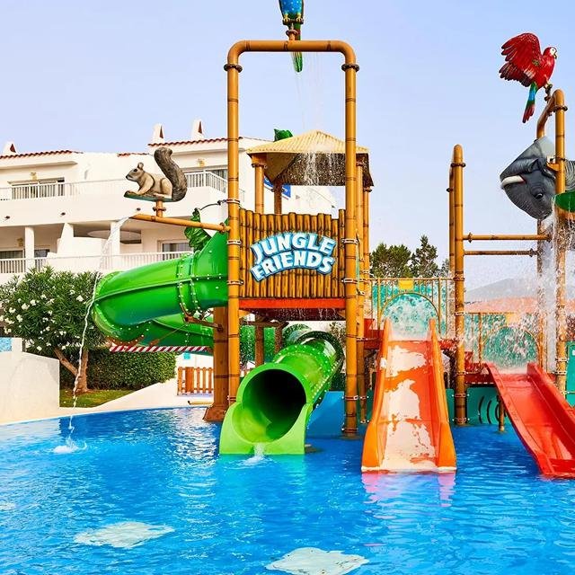 Maar bij het hotel blijven kan ook. Er is een mooi, groot zwembad voor een frisse duik met de hele familie en bij de poolbar wordt gezorgd voor je favoriete drankje, heerlijk! Kinderen beleven hier een topvakantie want er worden leuke spellen voor hen georganiseerd en er is ook nog eens een kleurrijke splashpool.
