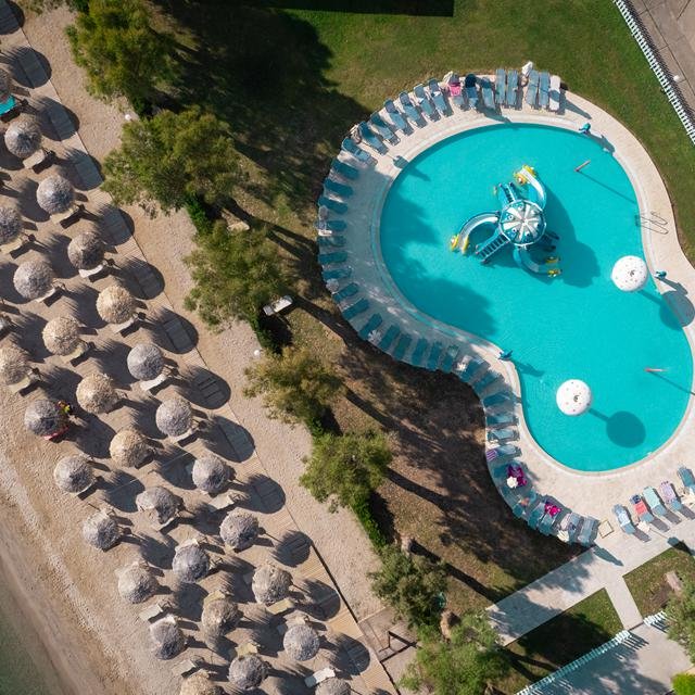 Het hotel ligt aan het kindvriendelijke strand van Moraitika, met ondiep en kalm water, perfect voor een dagje strand met het gezin. Hier geniet je van de zon op een ligstoel onder een parasol, terwijl de kinderen zich vermaken met watersporten. Zin in een hapje? Bezoek dan het strandrestaurant voor een verfrissende snack of een koel drankje. Daarnaast zijn er meerdere bars en een nachtclub voor een gezellige avond uit, en kun je in de buurt van het hotel de hoofdstraat van Moraitika ontdekken, vol restaurants, cafés en taverna’s.