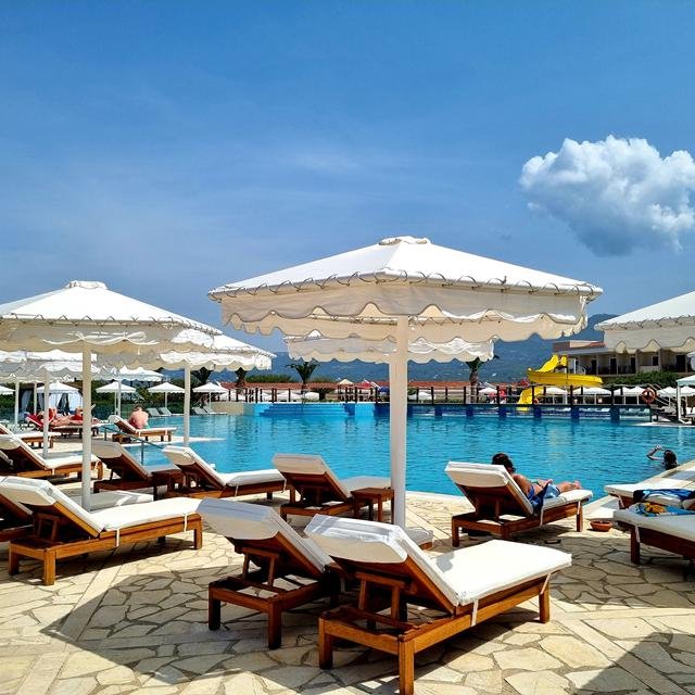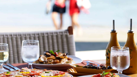 Je verblijft hier op basis van all inclusive en dat maakt je vakantie hier uiterst comfortabel. Je kan namelijk gewoon op je ligbed blijven liggen wanneer de kids zin hebben in een ijsje of een crêpe van de crêperie. Voor de lunch is er een souvlakitent, waar je heerlijk gemarineerde spiesjes kunt eten. Maar er is ook een hoofdrestaurant waar je van alles kunt uitproberen dat tijdens het buffet wordt gepresenteerd. Zin in een avondje Italiaans, Chinees of Grieks eten? Strijk dan neer in een van de themarestaurants en geniet van een wereldse keuken en uitzicht over zee.